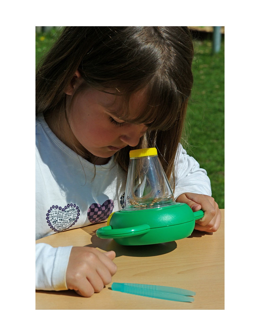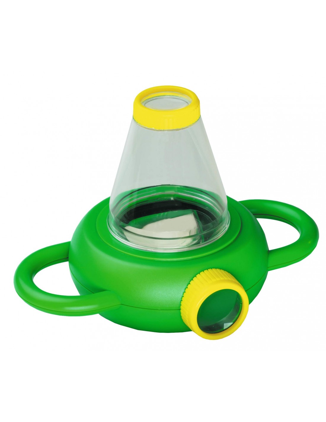 Sistemul locomotor la insecte este cel mai bine observat privind din partea inferioară. Acest recipient cu 2 unghiuri, permite acest lucru, datorită unui sistem de oglinzi înclinate. Fie prin lupa de sus sau cea laterală, elevii dvs. vor studia animalele mici și insectele cu mult entuziasm. De nelipsit din rucsacul de excursii al micilor exploratori. Lupa Bilaterala mărește de 4 ori Partea superioară este detașabilă.