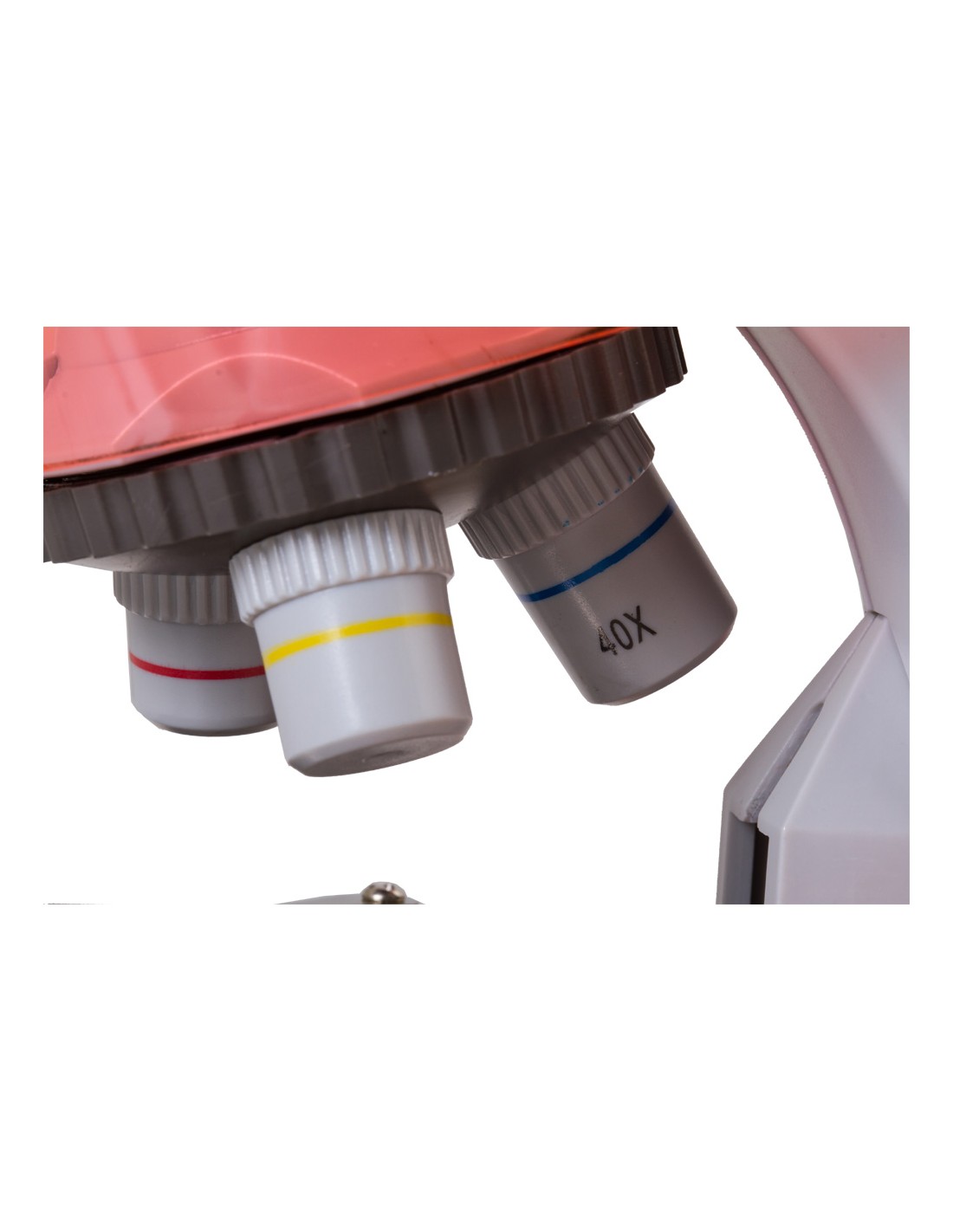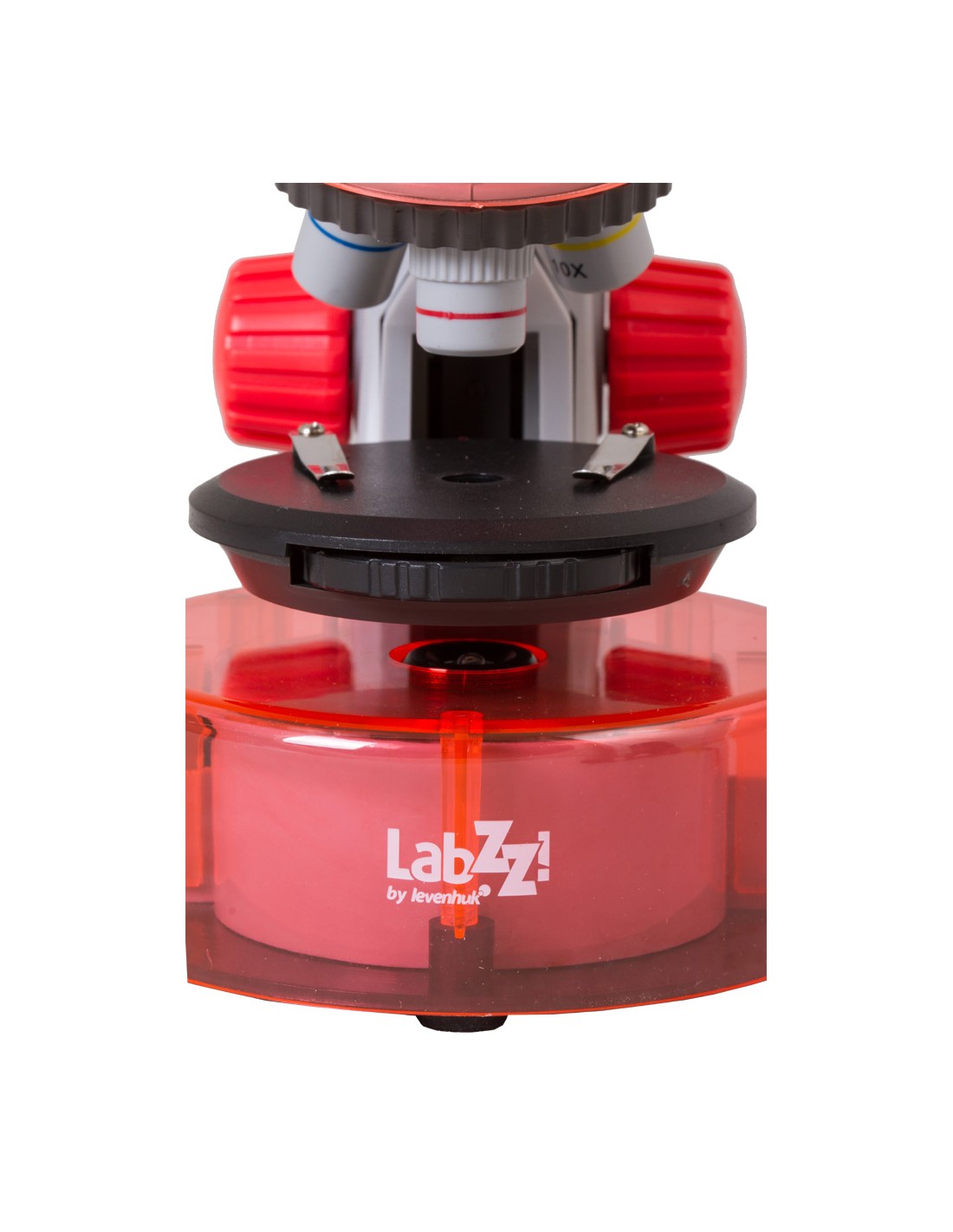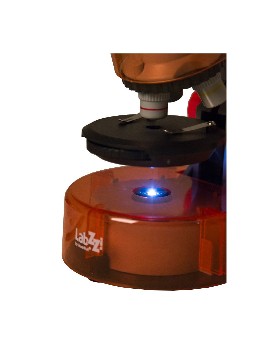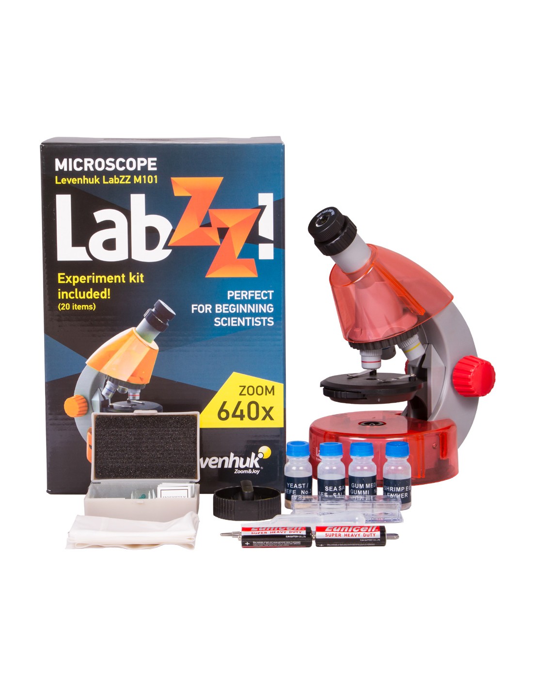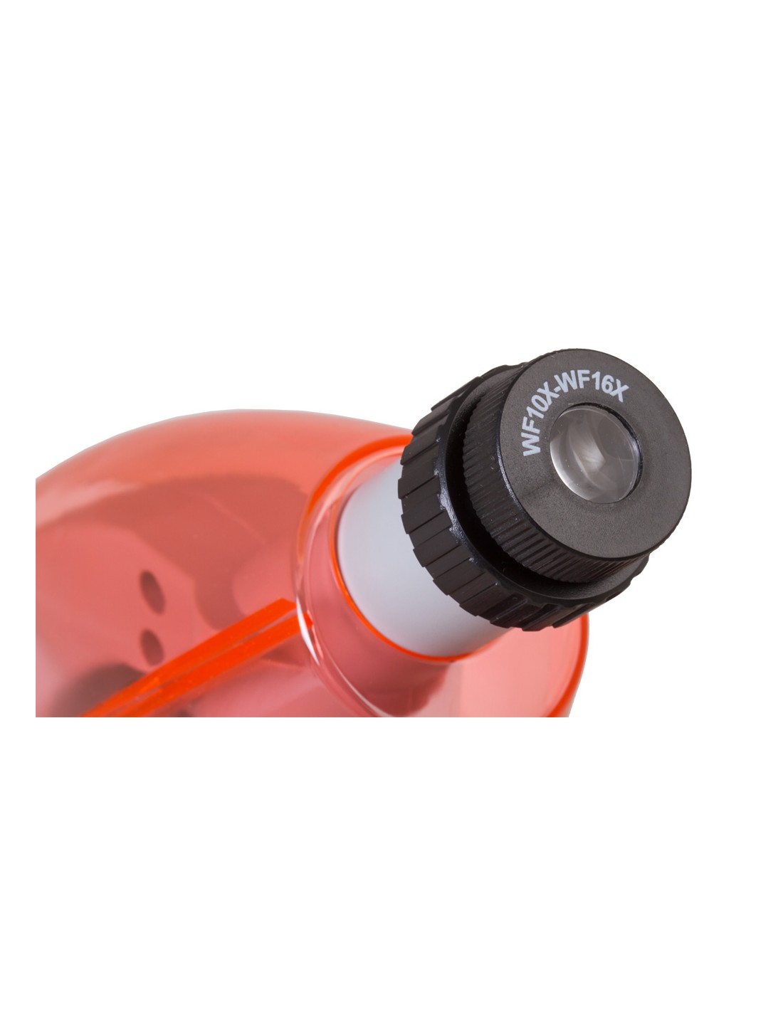 Microscopul color Ametist Levenhuk LabZZ M101 poate fi un cadou perfect pentru un copil curios. Cu ajutorul microscopului, tânărul cercetător poate descoperi secretele lumii microscopice! Trusa include tot de ce ar putea avea nevoie pentru primele descoperiri microscopice. Dar acest microscop se distinge de restul prin aspectul său neobișnuit - corpul său este inițial translucid, colorat. Levenhuk LabZZ M101 Orange - acest microscop pentru copii este realizat cu o optică de calitate care este comparabilă cu sistemele optice utilizate în multe modele de microscop „pentru adulți”. În turelă există trei lentile - astfel încât să puteți schimba lentilele rapid fără a fi nevoie să întrerupeți monitorizarea. Ceea ce diferențiază modelul de celelalte microscopuri este ocularul glisant în două poziții, care înlocuiește ocularele tradiționale de mărire 10x și 16x. Deoarece ocularul nu trebuie înlocuit, nu poate fi pierdut. Ocularul și cele trei lentile obiective permit următoarele măriri: 40x, 64x, 100x, 160x, 400x și 640x. Microscopul este potrivit pentru studierea aproape oricărei probe translucide, cum ar fi o picătură de apă, o aripă de țânțar sau diapozitive gata pentru utilizare. Luminozitatea este reglabilă - este ușor să găsești iluminarea optimă pentru un anumit model. Corpul microscopului este realizat din plastic rezistent. Acest lucru îl face ușor și fiabil - un utilizator tânăr are nevoie de el! Pentru o utilizare și mai confortabilă, capul microscopului poate fi înclinat cu 45 de grade. Microscopul nu necesită alimentare cu rețea; poate fi operat cu baterii convenționale, ceea ce îl face mai sigur și mai convenabil.