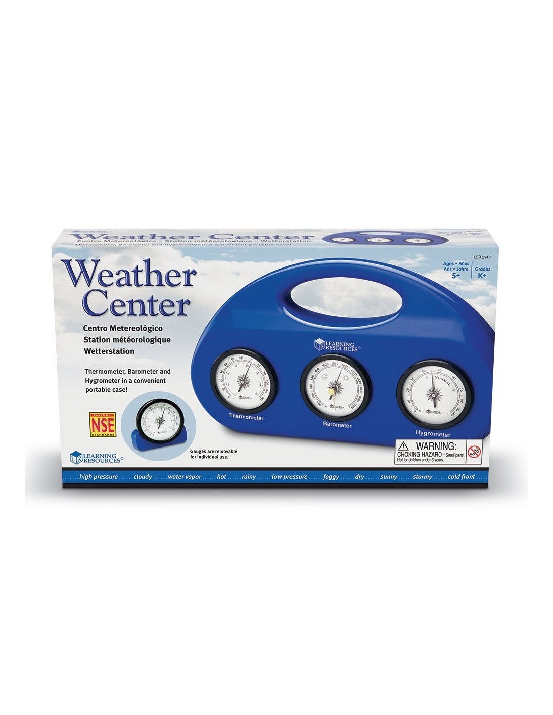 Această staţie meteo cuprinde un barometru (măsoară presiunea atmosferică), un higrometru (măsoară umiditatea) şi un termometru Celsius si Fahrenheit. Include şi un ghid de instrucţiuni. Se utilizeaza în cadrul lecţiilor de Ştiinţe, frontal, individual şi în grupuri mici. Elevii măsoară şi compară temperatura, presiunea, umiditatea. Diametrul instrumentelor: 7,5cm