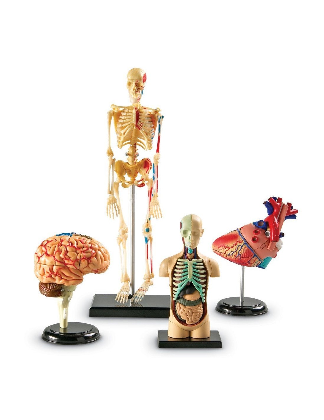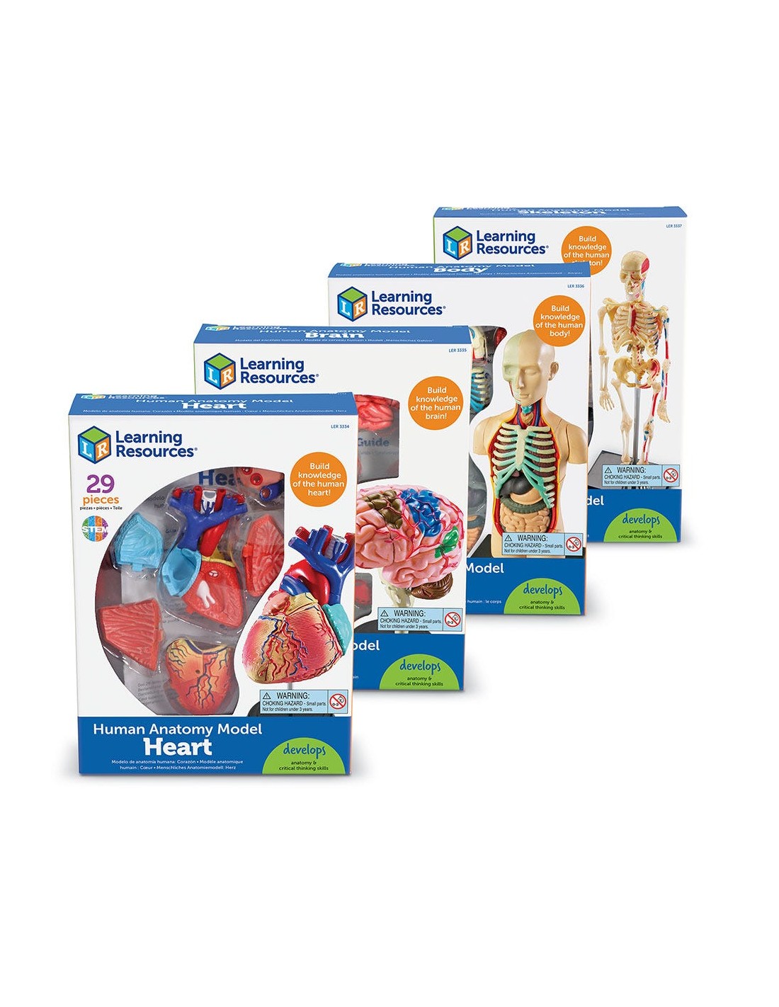 Set modele anatomie - Sunt perfecte pentru a înţelege modul în care interacţionează organele şi sistemele, setul concentrându-se pe organele majore ale sistemului circulator, nervos şi osos, precum si pe organele interne. Elevii pot aprofunda conceptele legate de anatomia corpului uman prin construirea acestor modele. Este format din: -Model scheletul uman 41 piese -H=23 cm -Model corpul uman 31 piese - H=11.5 cm -Model creier 31 piese - H=9.5 cm -Model inima -29 piese - H=12.5 cm