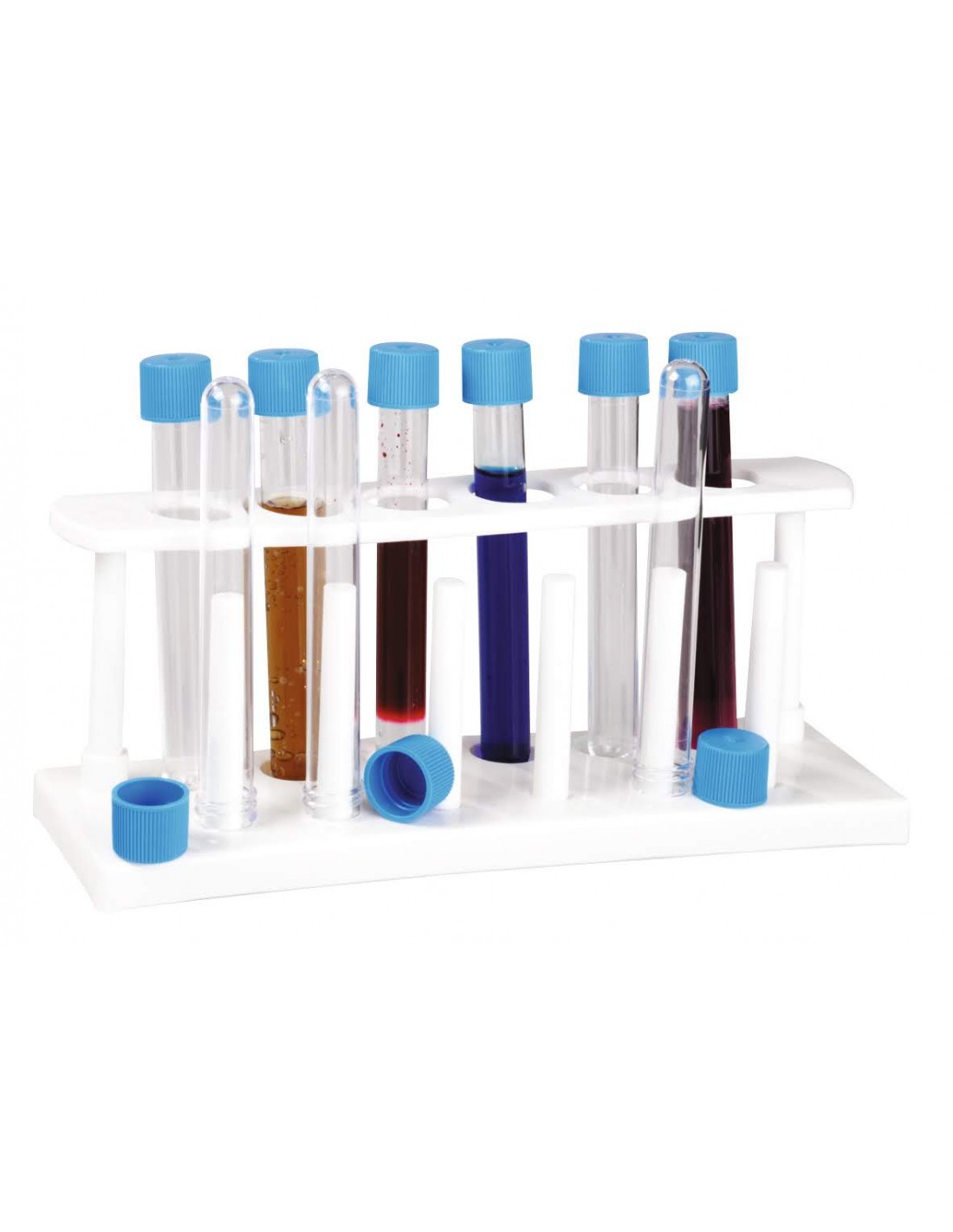 Stativul este din plastic rezistent, cu orificii pentru păstrarea a 6 eprubete. Este prevazut cu 6 tije de uscare, în care se pot pune eprubetele cu gura în jos, pentru scurgerea apei după spălare.