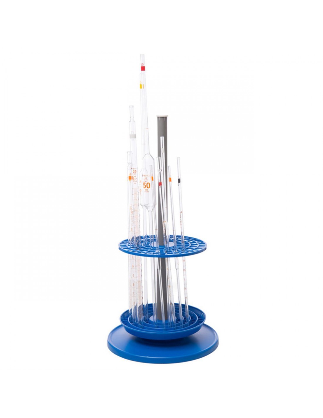 - Suport rotativ complet la 360° pentru pipete, realizat din polipropilena, fiind ideal pentru sustinerea a 94 de pipete