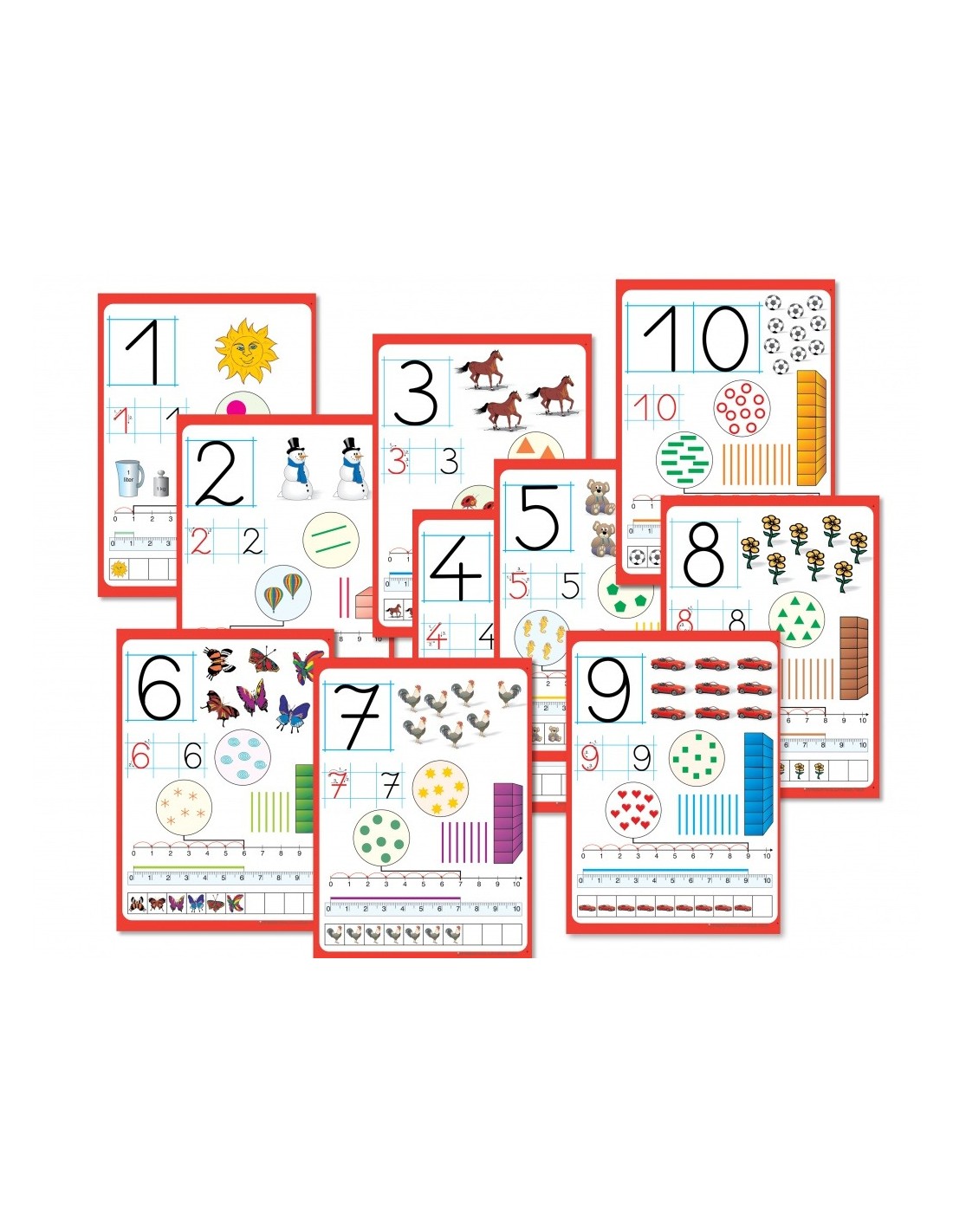 Setul contine 10 planse cu semne numerice. Plansele au fost gandite astfel incat sa poata fi folosite atat in unitatile de invatamant prescolar, dar si in scoala. Fiecare semn are o reprezentare numerica, cat mai aproape de realitatea imediata a copilului. Grafica este atractiva si specifica particularitatilor de varsta carora li se adreseaza. Materialul a fost conceput astfel incat educatorul sa poata atinge obiective ca dezvoltarea memoriei, recunoasterea semnelor numerice, identificarea semnului numeric. Recomandam folosirea acestui material atat in gradinite, dar si la orele de matematica.