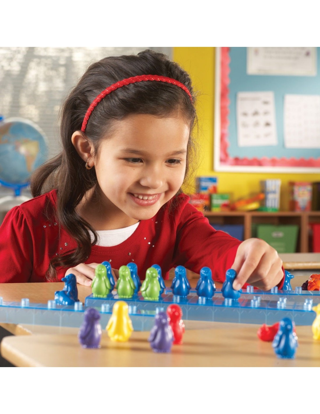 Jocul este perfect pentru realizarea sirurilor de numere, pentru calcule, sortare, activitati in baza 10 si multe altele. Setul include 10 bare "de gheata" din plastic (30cm x 2,5 cm), 100 de pinguini colorati, din plastic, precum si un ghid de activitati. [embeddoc url="https://materialedidactice.ro/wp-content/uploads/2013/05/LER3311.pdf"]Descarca manual
