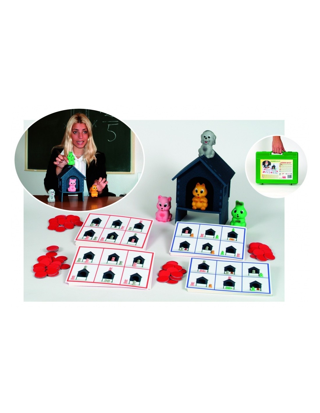 - 1 casuta si 4 animale de jucarie (catel, pisica, veverita si iepure)