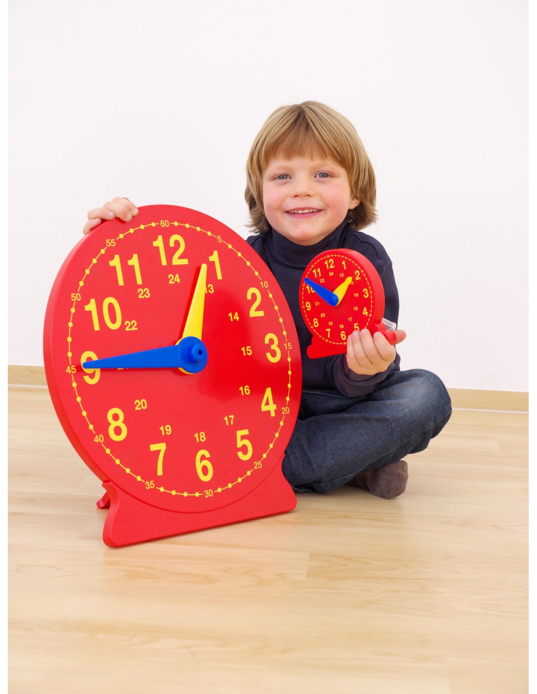 Daca elevii exerseaza cu acest ceas, vor intelege foarte usor formarea orelor. Are un diametru de 13 cm. Acul de ceasornic se poate misca cu mana, se poate tine ridicat datorita piciorului sau culcat pe masa. Acul mic urmeaza automat miscarea acului mare.