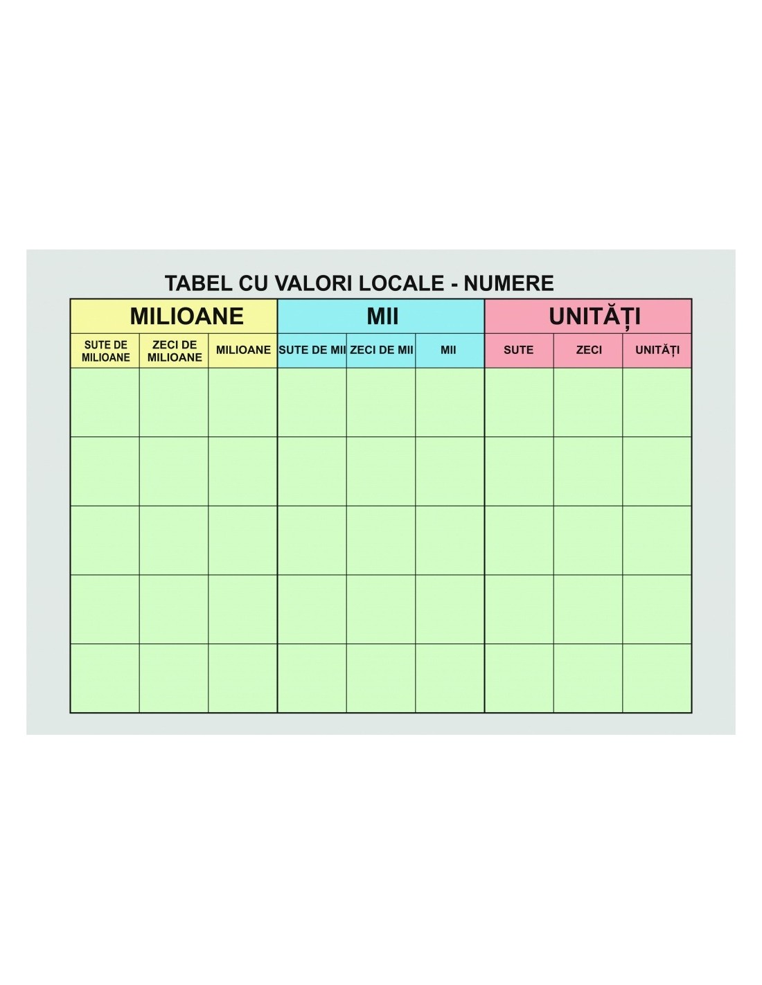 - scrierea cu cifre a unor numere din intervalul 0 – 1 000 000 000