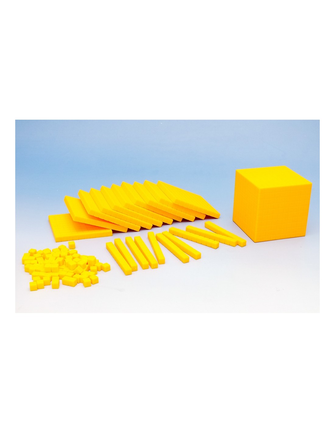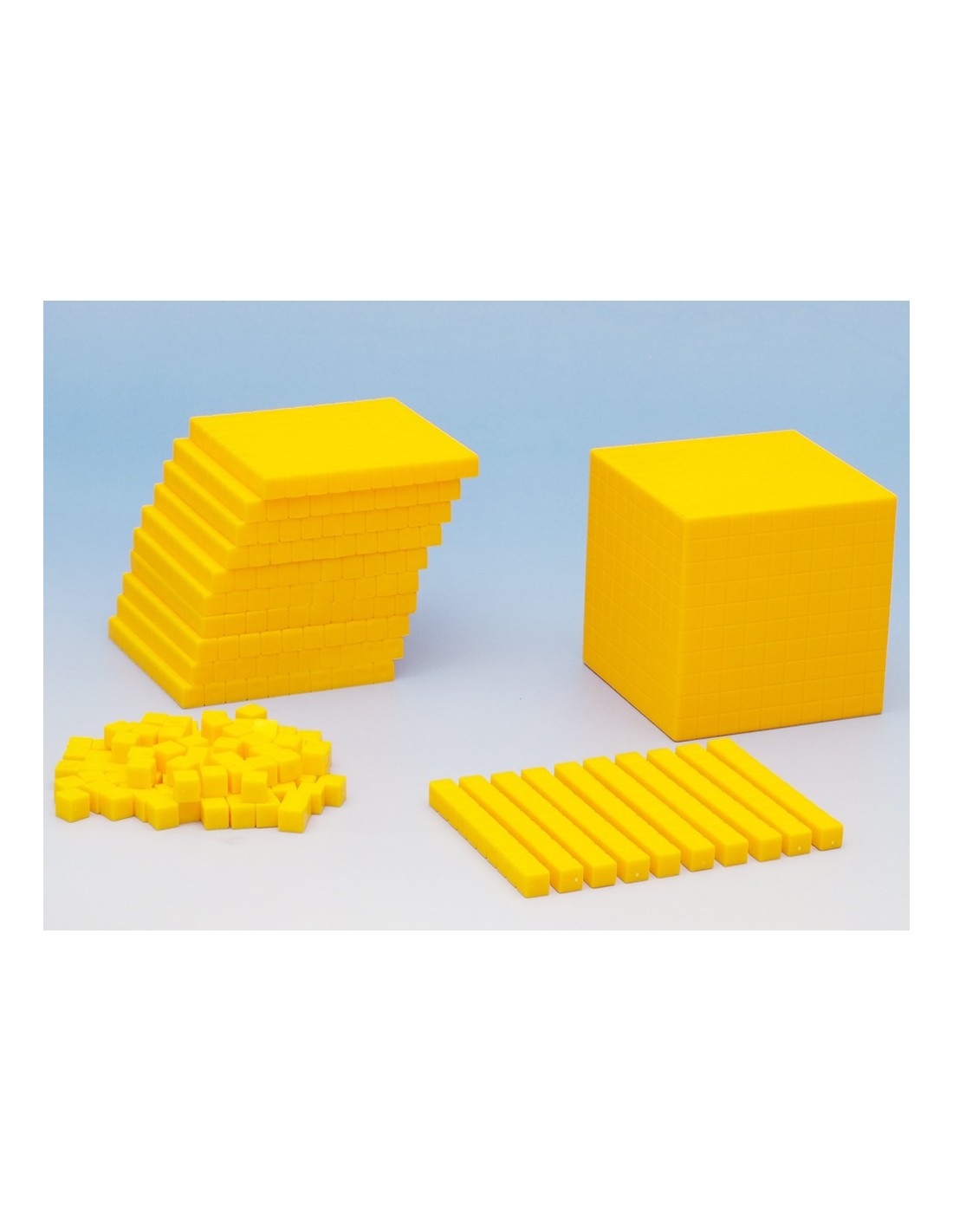 Recomandat pentru învăţarea calculului suprafeţei şi a volumului - numeratia în baza 10 - plastic 121 piese: