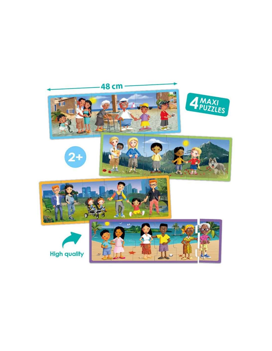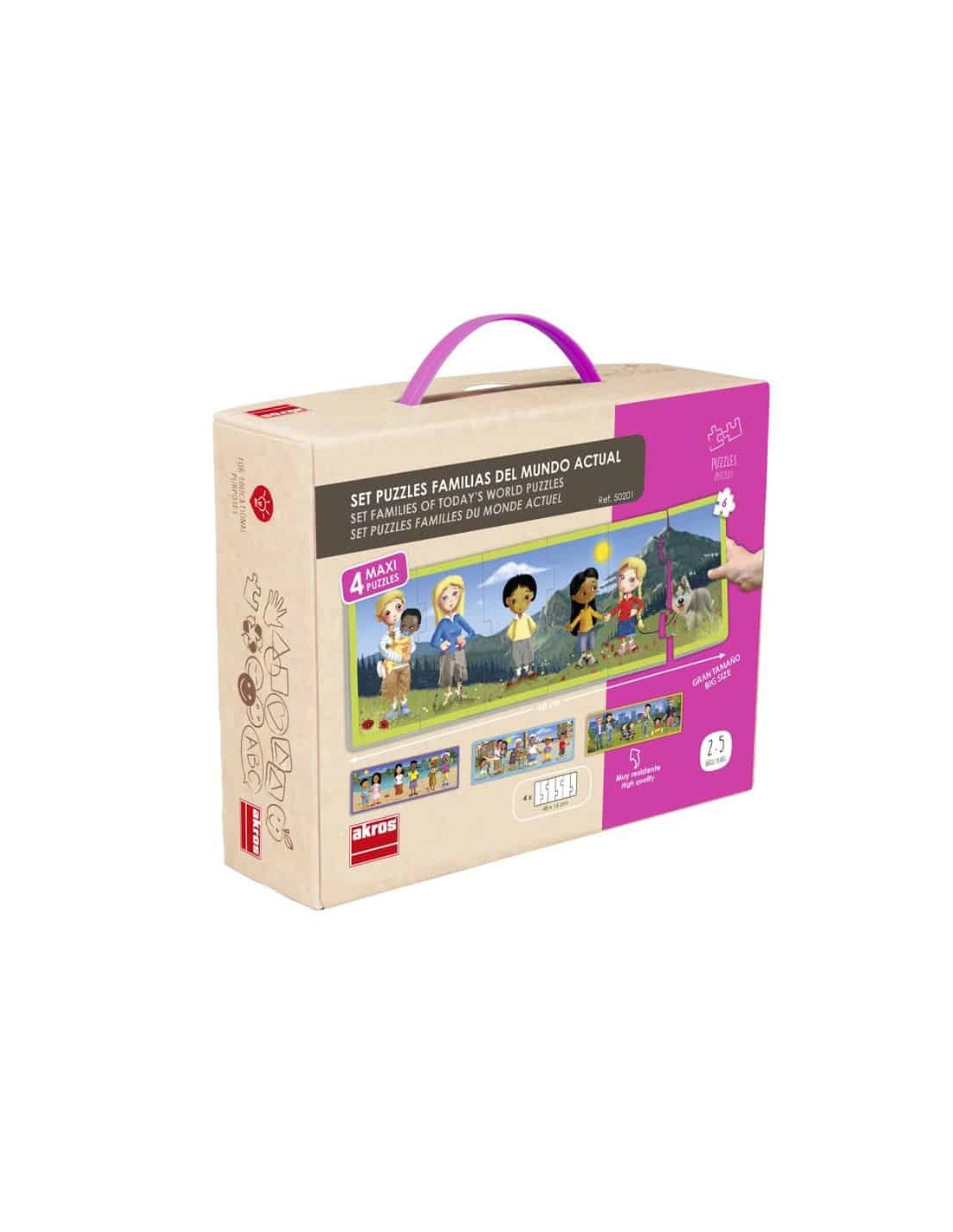 Un set de 4 puzzle-uri mari prin care invatam diferite familii ale lumii moderne. Fiecare puzzle este compus din 6 piese mari din carton gros.