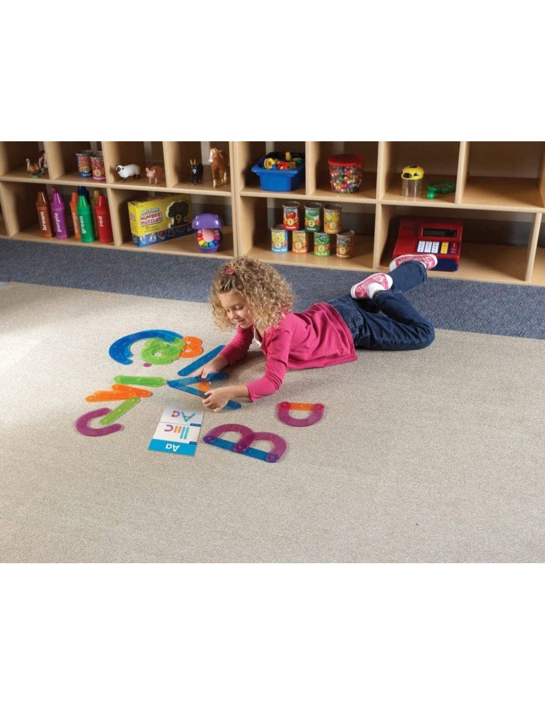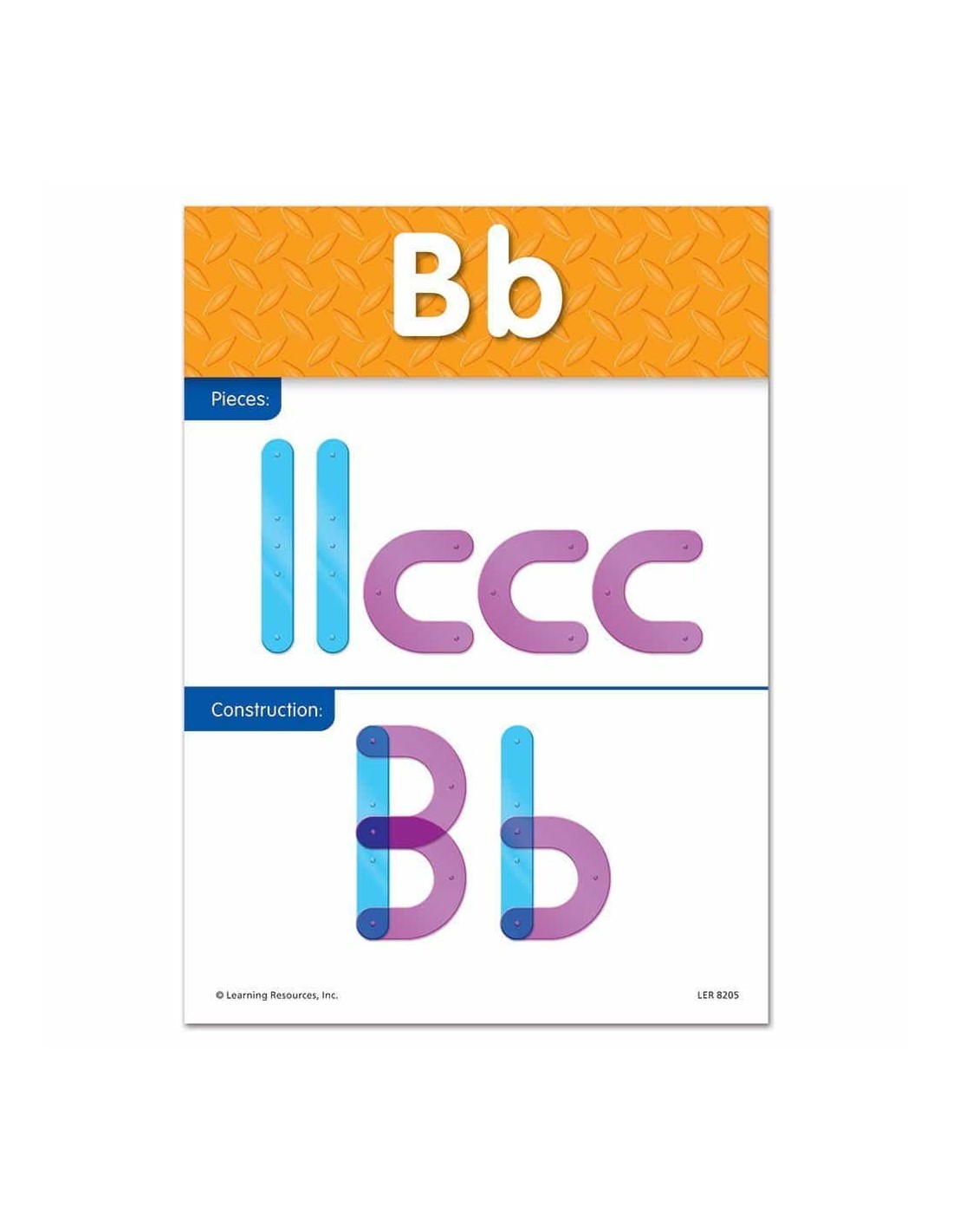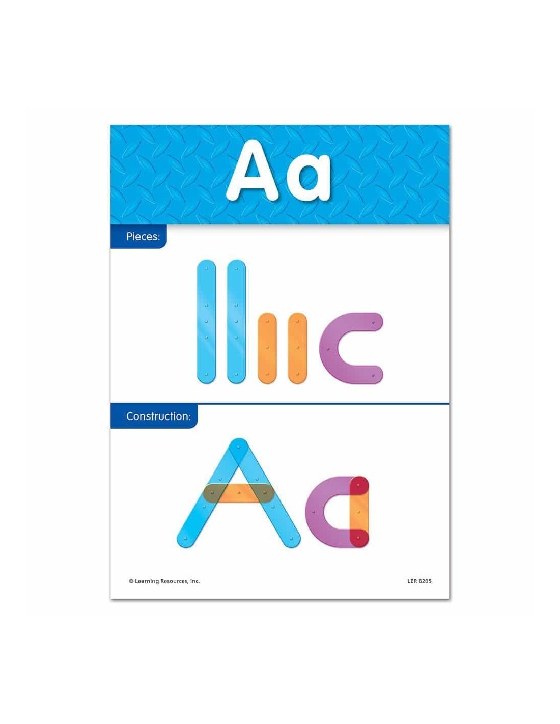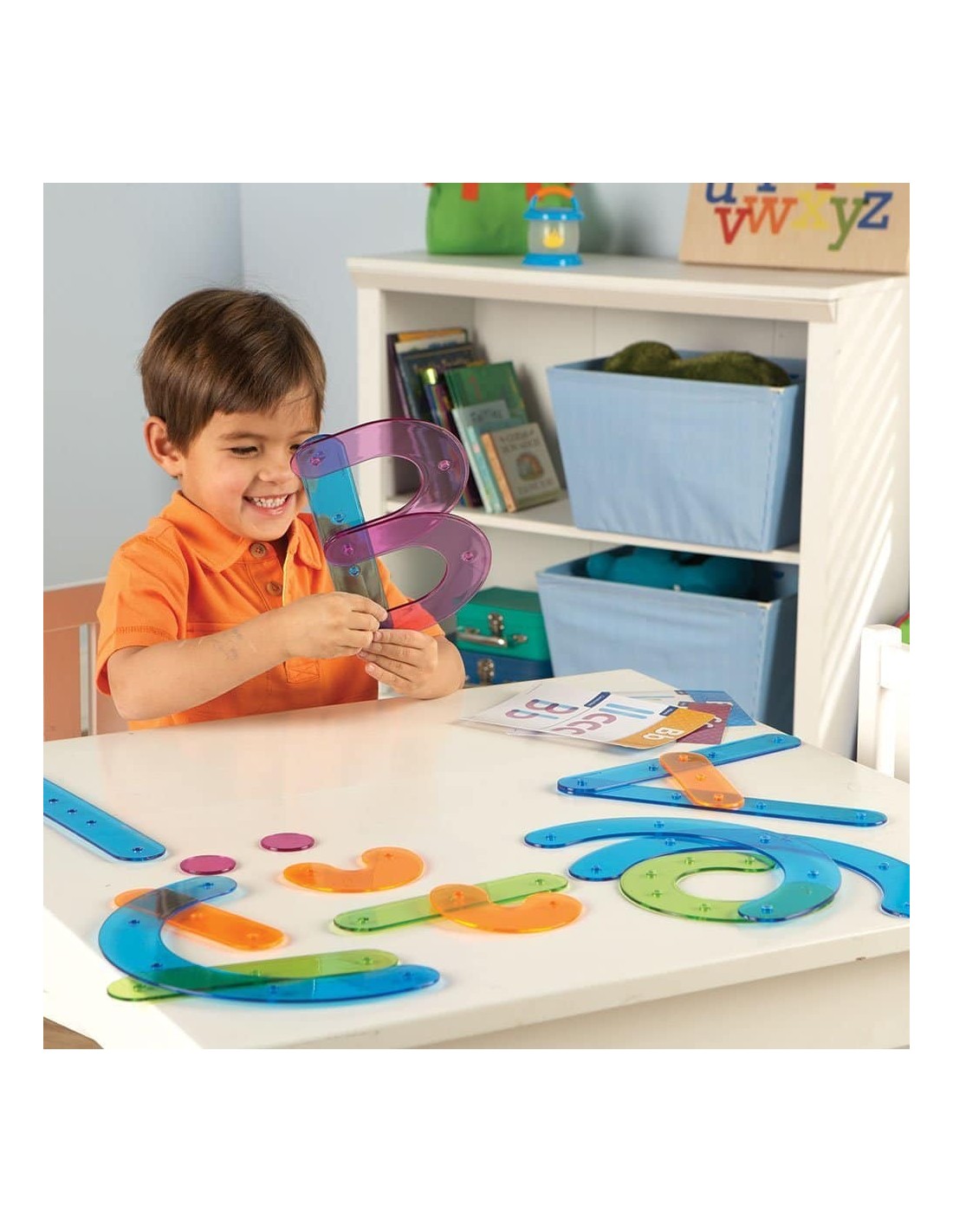 Setul include 60 de piese colorate pentru construirea literelor; 13 carduri duble cu activitati si un ghid de utilizare. Piesele permit construirea literelor mici si mari de tipar. Asamblarea pieselor se face cu usurinta, dimensiunea acestora fiind perfect adaptata manutelor copiilor si nefiind necesare alte materiale. Acest joc extrem de colorat si de atractiv pentru copii faciliteaza recunoasterea timpurie a literelor alfabetului. Setul este ideal pentru consolidarea si verificarea cunostintelor prin joc. Cea mai mare piesa masoara 25 cm.