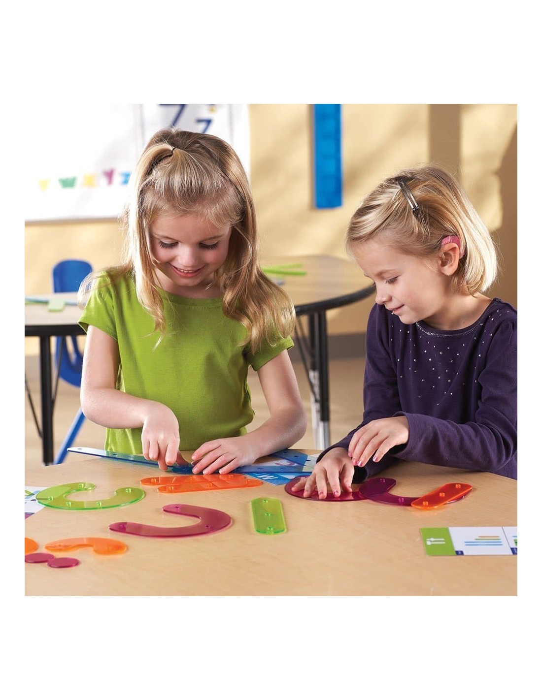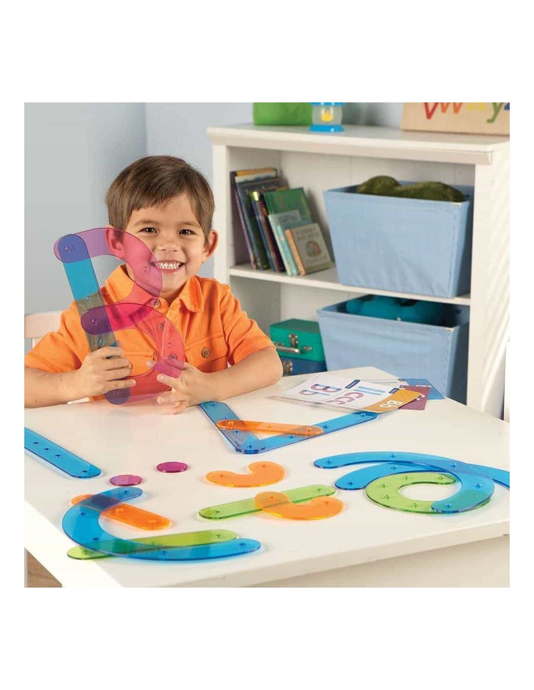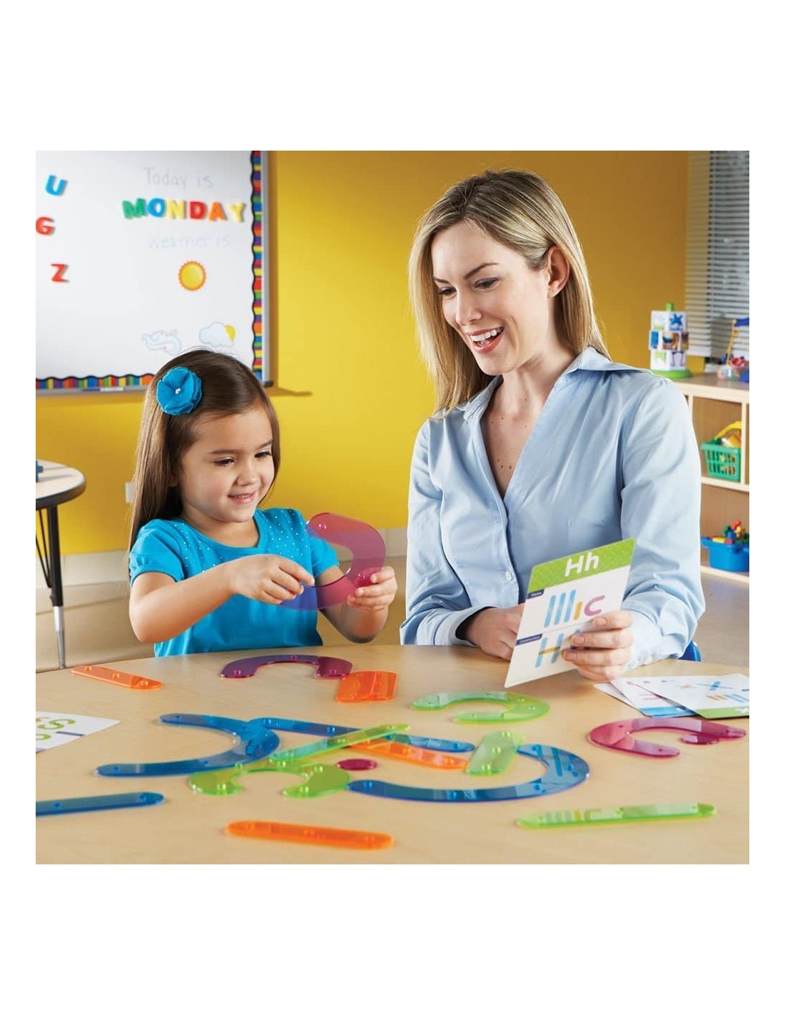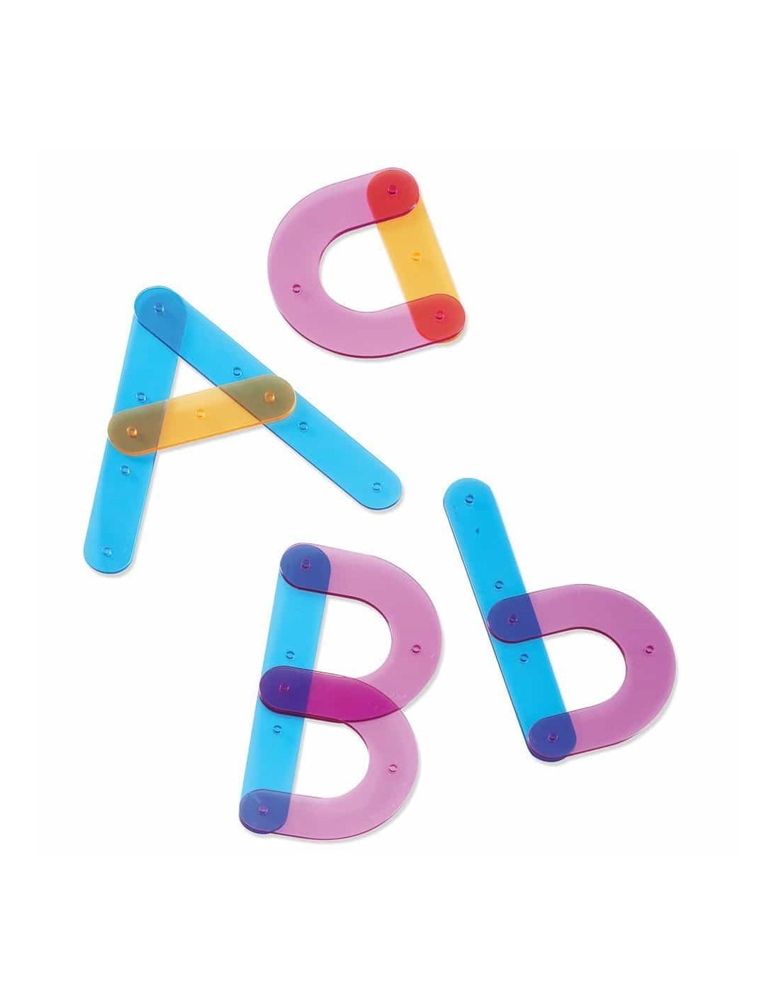 Setul include 60 de piese colorate pentru construirea literelor; 13 carduri duble cu activitati si un ghid de utilizare. Piesele permit construirea literelor mici si mari de tipar. Asamblarea pieselor se face cu usurinta, dimensiunea acestora fiind perfect adaptata manutelor copiilor si nefiind necesare alte materiale. Acest joc extrem de colorat si de atractiv pentru copii faciliteaza recunoasterea timpurie a literelor alfabetului. Setul este ideal pentru consolidarea si verificarea cunostintelor prin joc. Cea mai mare piesa masoara 25 cm.