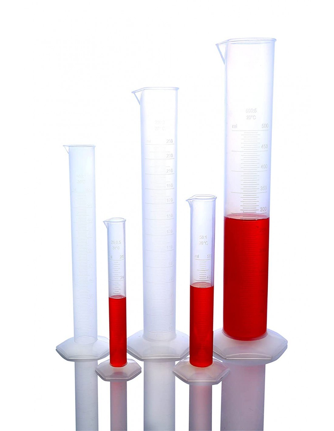 Acesti cilindri sunt ideali pentru a învăţa diferenţa dintre cantităţi măsurând 10ml, 25ml, 50ml, 100ml, 250ml, 500ml şi 1000 ml.