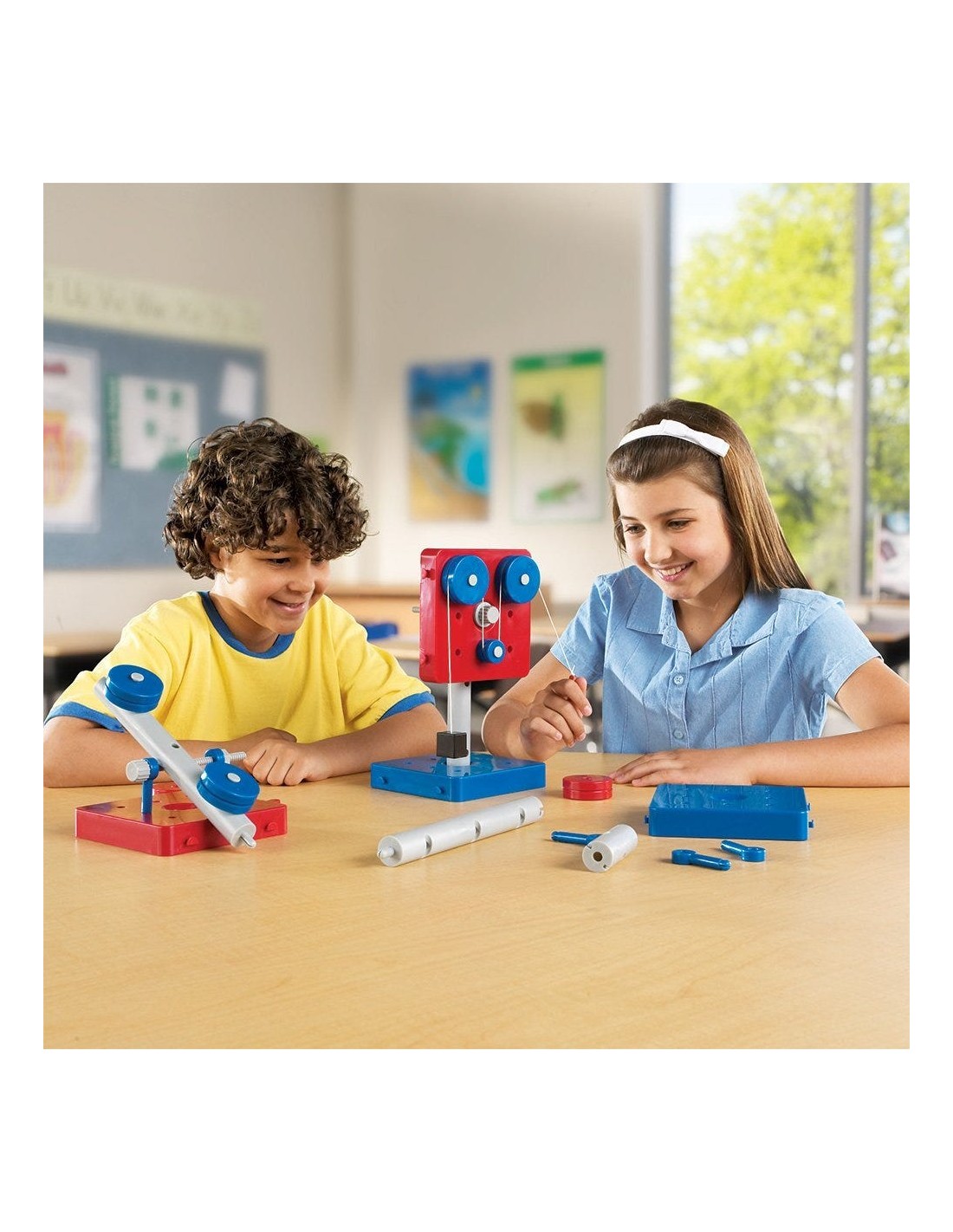 Setul de 63 de piese te ajută să construieşti toate cele 5 maşinării în același timp! Elevii pot construi, examina și explica mecanismele simple pentru a dezvolta o înțelegere mai profundă a modului în care acestea ne simplifică munca. Conține destule piese pentru a construi o pârghie, scripete, plan înclinat, roata și osia, pana, toate în același timp. Modifică mecanismele cu 4 greutăți incluse (două de 5g și două de 10g) și 8 benzi de cauciuc incluse pentru a explora efortul, forța, greutatea, mișcarea și distanța. [embeddoc url="https://materialedidactice.ro/wp-content/uploads/2021/01/LER2442-WebGuide.pdf" download="all"] [embeddoc url="https://materialedidactice.ro/wp-content/uploads/2021/01/2442_SimpMach_Cards_WEB.pdf" download="all"]