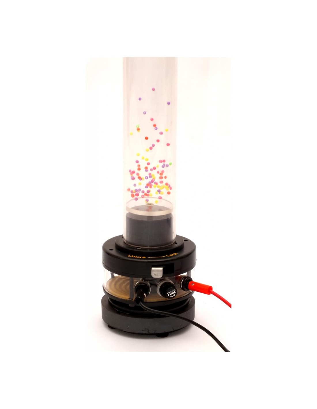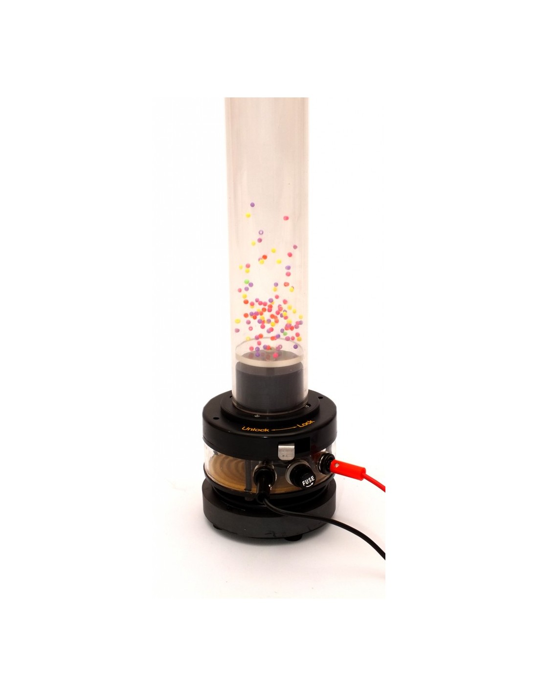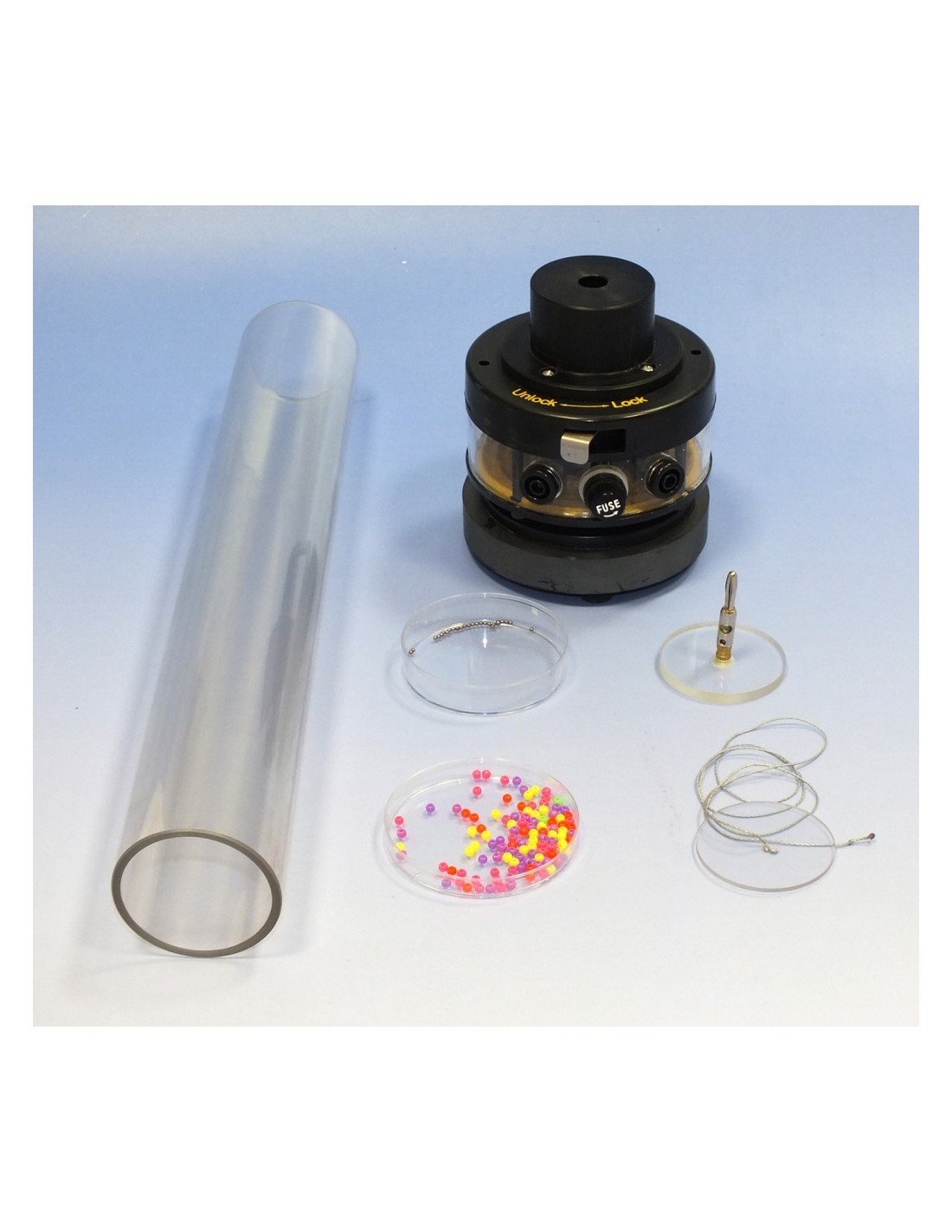 Există mai multe fenomene (mișcare browniană, difuzie) care nu pot fi interpretate decât dacă presupunem că gazul este format din particule. Acest instrument este destinat să ilustreze aceste fenomene. 230V / 6-8V DC, min. 1A