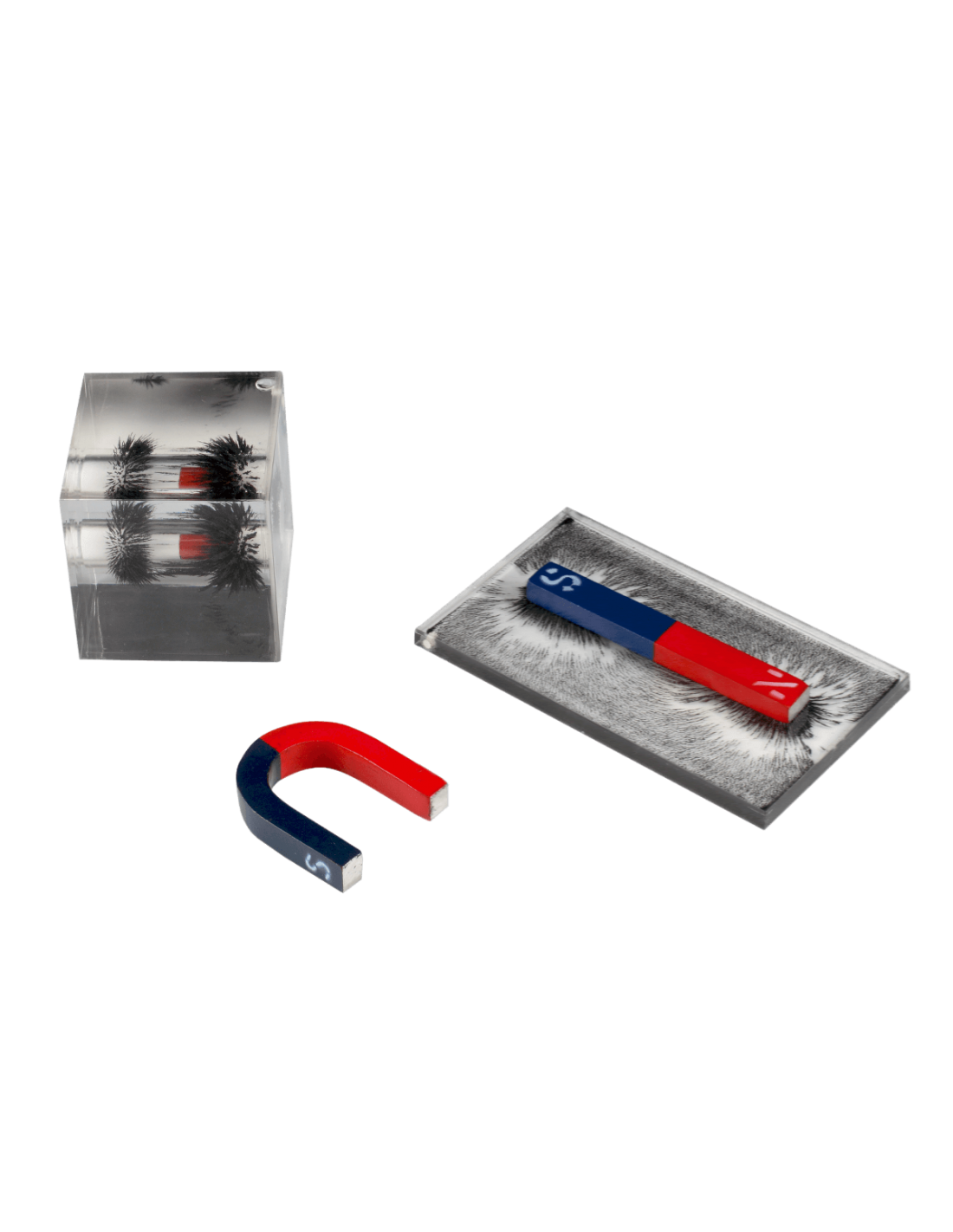 Set proiectabil. Liniile de forţă sunt vizualizate de firişoarele de pilitură de fier, care se orientează, aflate în suspensie într-un lichid special. Orice magnet este înconjurat în spaţie din toate părţile, în apropiere, în depărtare de linii de forţe magnetice invizibile, care se îndreaptă de la polul nord spre cel sud. Liniile de forţe vizualizează câmpul magnetic. Câmpul este cu atât mai intens cu cât densitatea liniilor de câmp este mai mare.