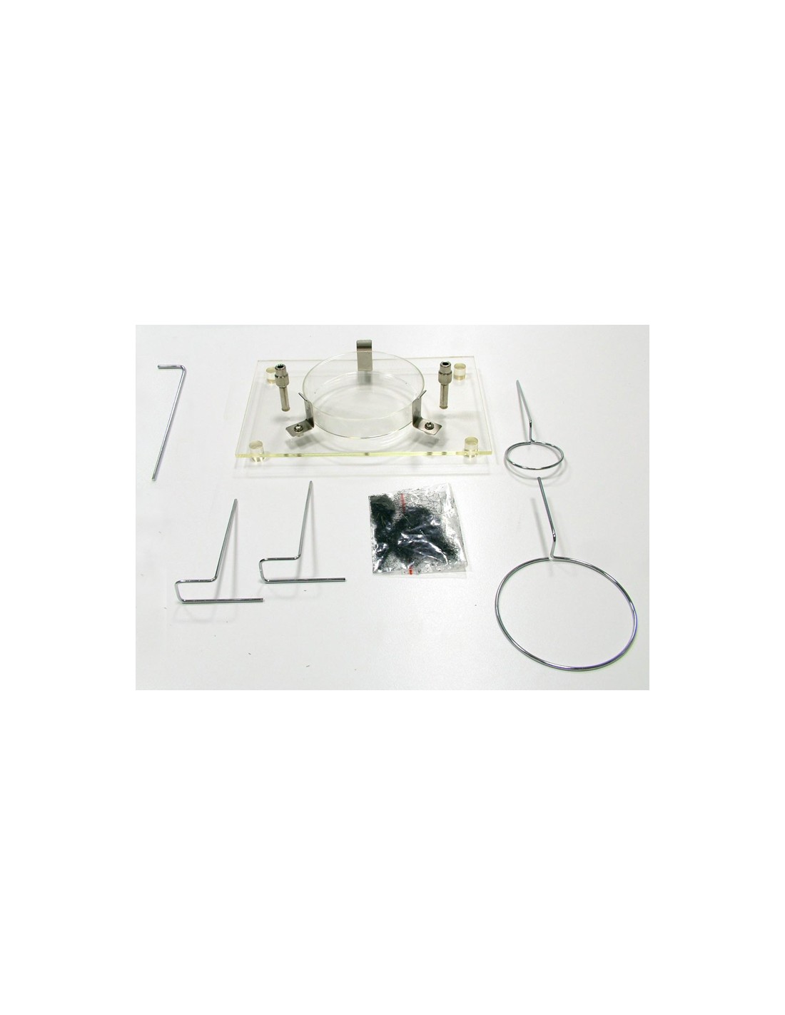 Dispozitiv pentru demonstrarea liniilor de forță electrostatice. Din imaginea liniei de forță putem determina nu numai direcția liniilor de intensitate a câmpului, ci și putem deduce relațiile de mărime, deoarece particulele se condensează în locurile cu intensitate de câmp mai mare. Greutate: 0,2 kg.