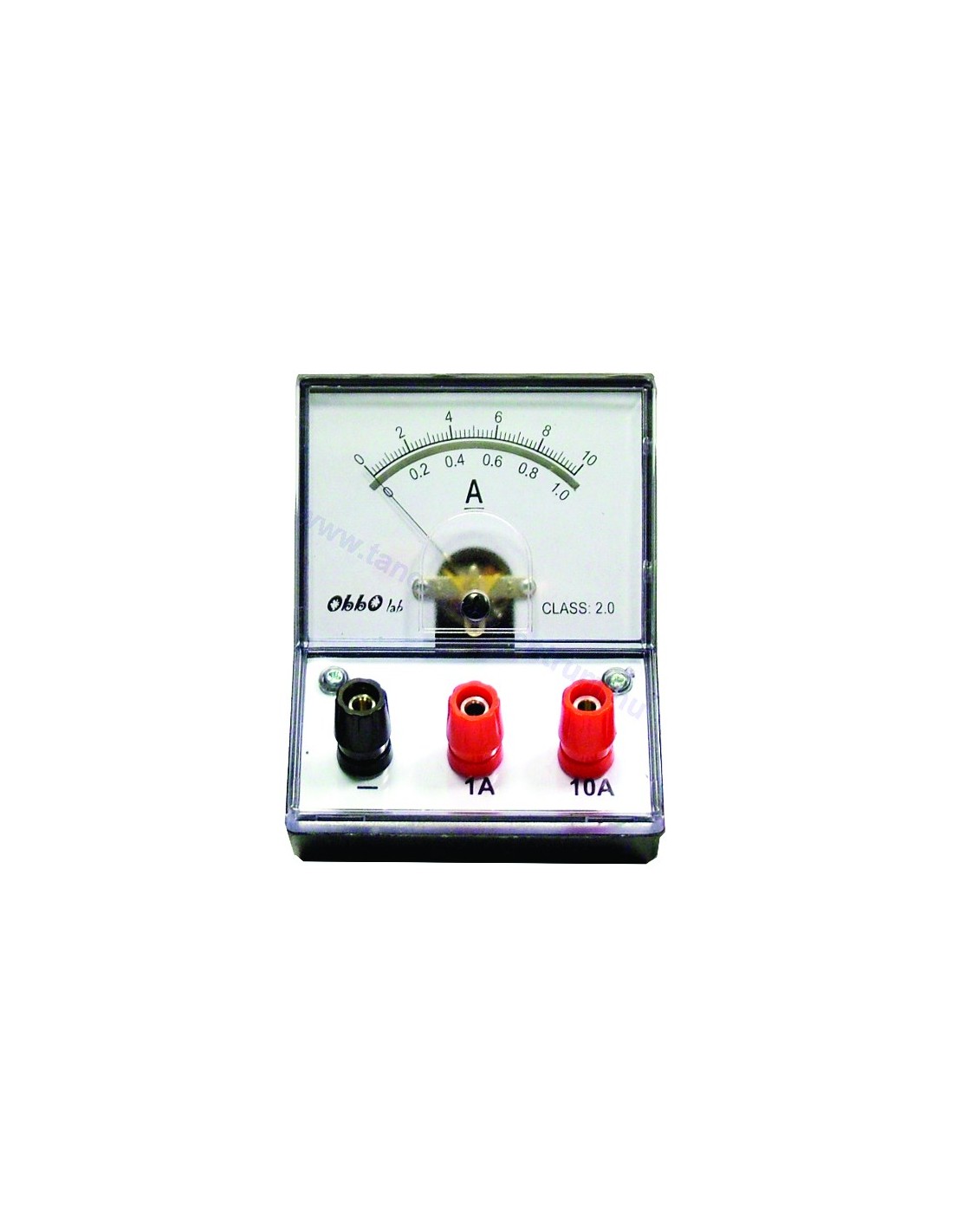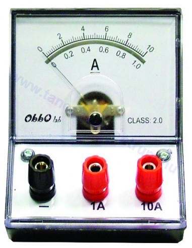 Aparat pentru masurarea intensitatii curentului continuu; prevazut cu 3 borne de conexiune si cu 2 scale de masura.