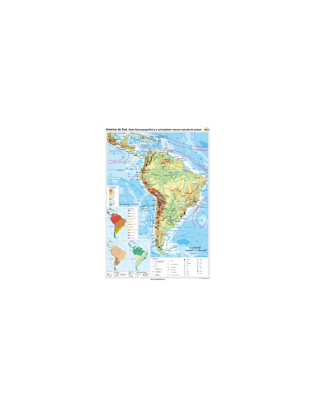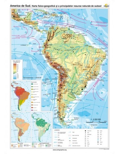 America de Sud. Harta fizico-geografica si a principalelor resurse naturale de subsol