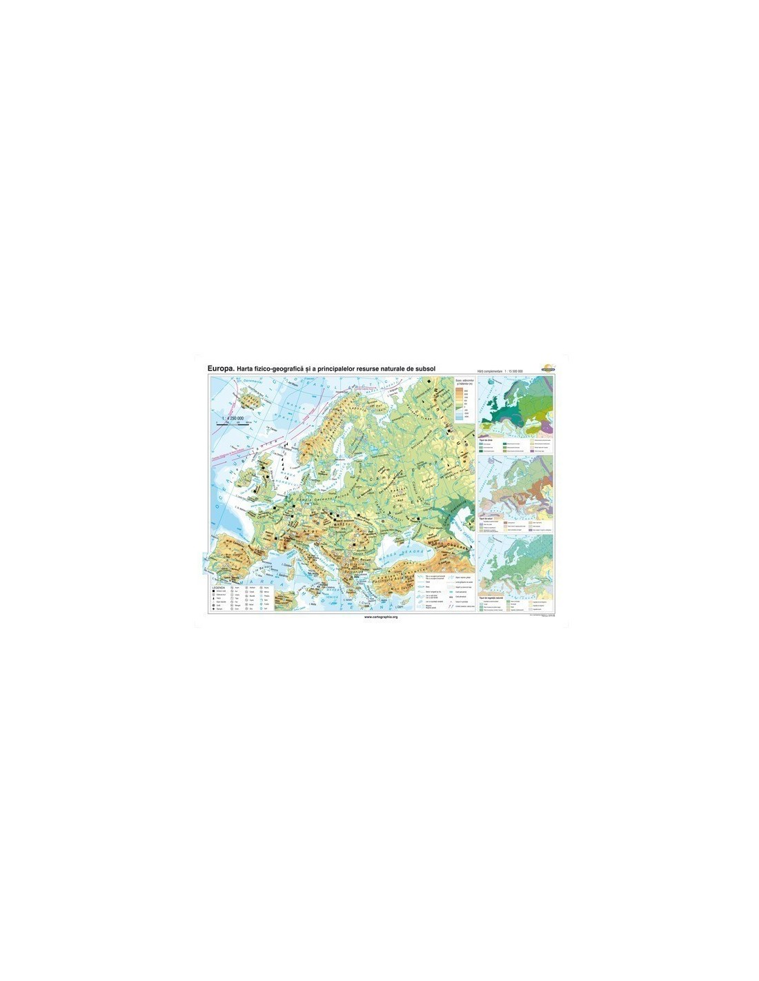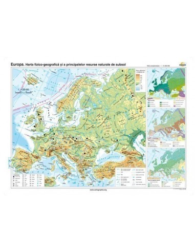 Europa. Harta fizico-geografica si a principalelor resurse naturale de subsol