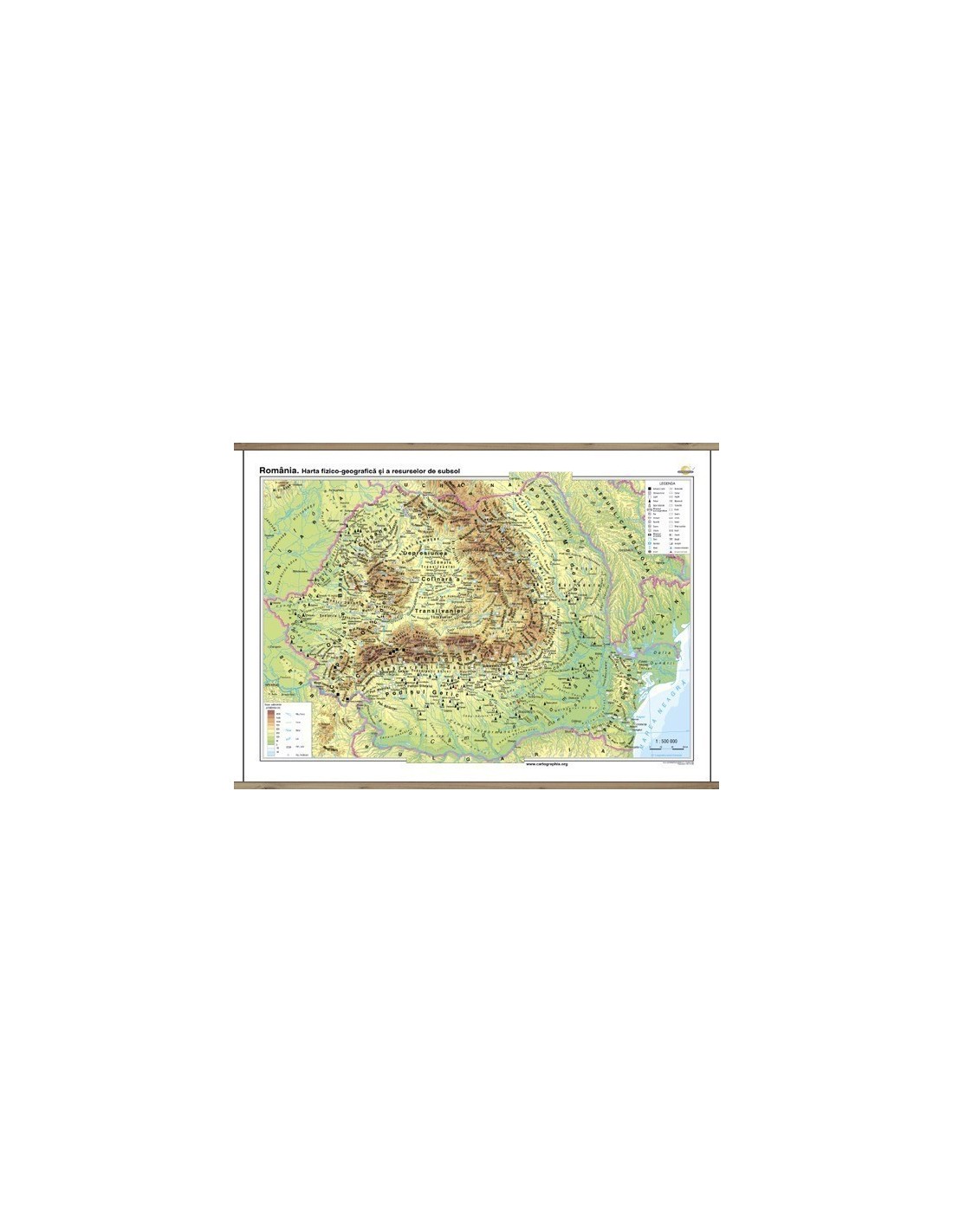 Romania. Harta fizico-geografica si a resurselor naturale de subsol