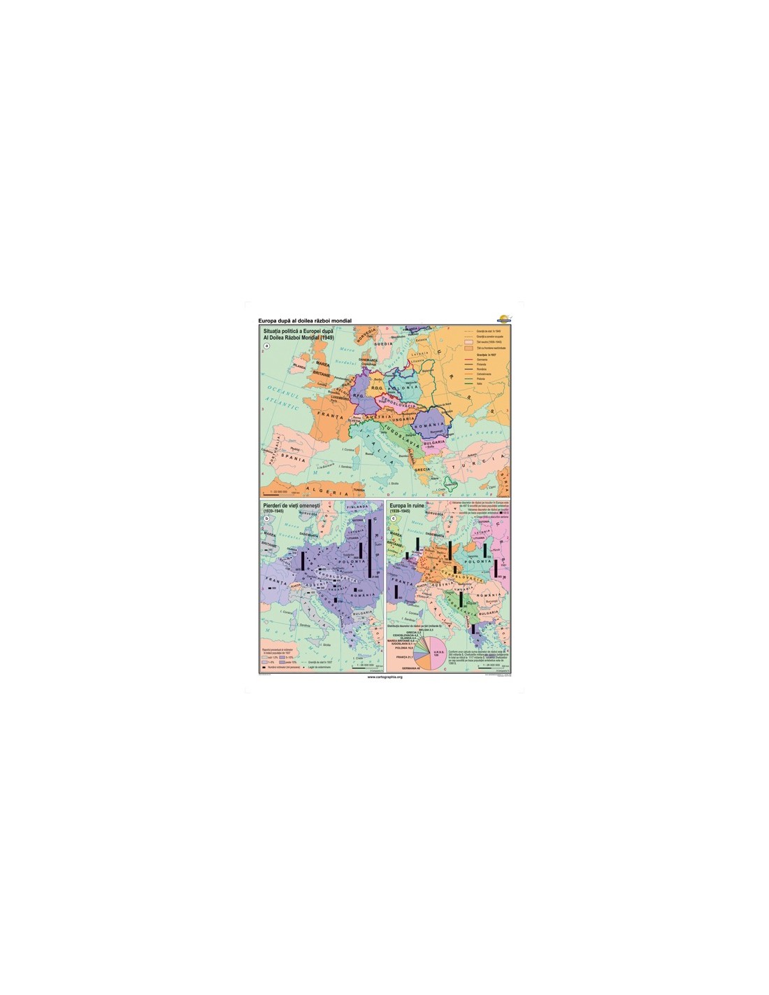 Hărţile sunt învelite în folie mată UV, pentru protejarea calităţii culorii. Pe folia de protectie se poate scrie, respectiv se poate şterge scrisul cu uşurinţă. Hărţile sunt dotate cu întăritură de lemn, respectiv sfoară de agăţare.