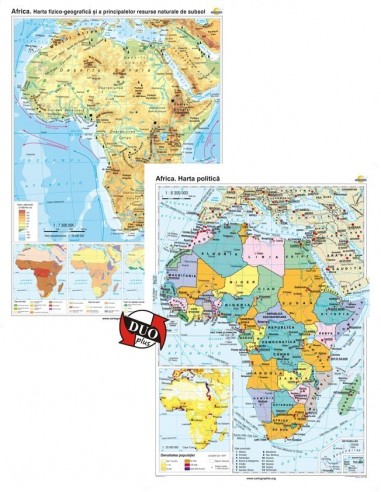 Africa. Harta fizico-geografica si a principalelor resurse naturale de subsol si Africa. Harta politica