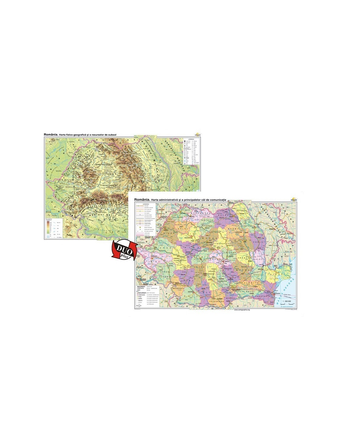 Romania. Harta fizico-geografica si a resurselor naturale de subsol si Romania. Harta administrativa si a principalelor cai de