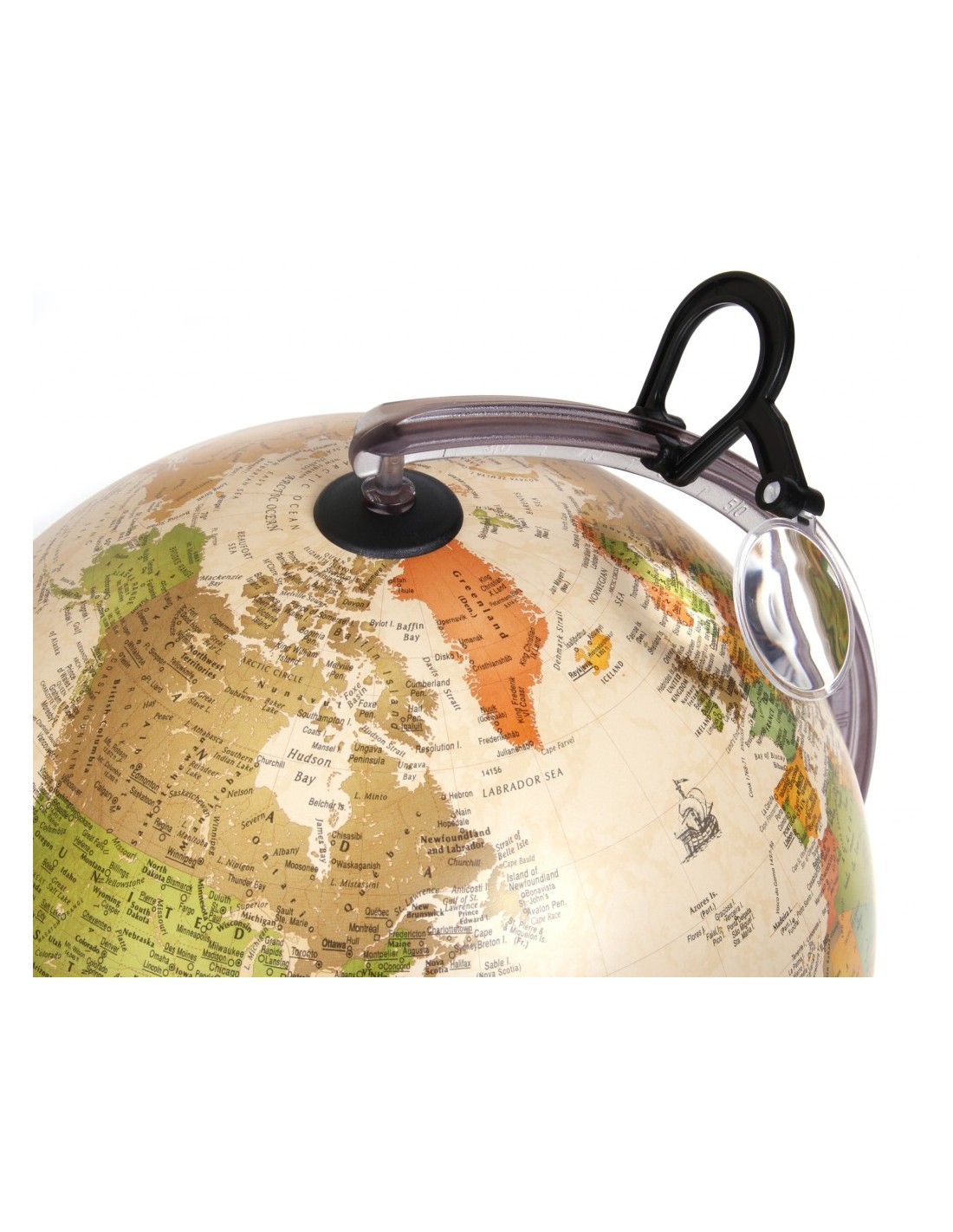 Are o baza durabila si un meridian auriu. De asemenea include si o lupa cu suport din plastic care poate fi atasat pe arcul meridian al globului.
