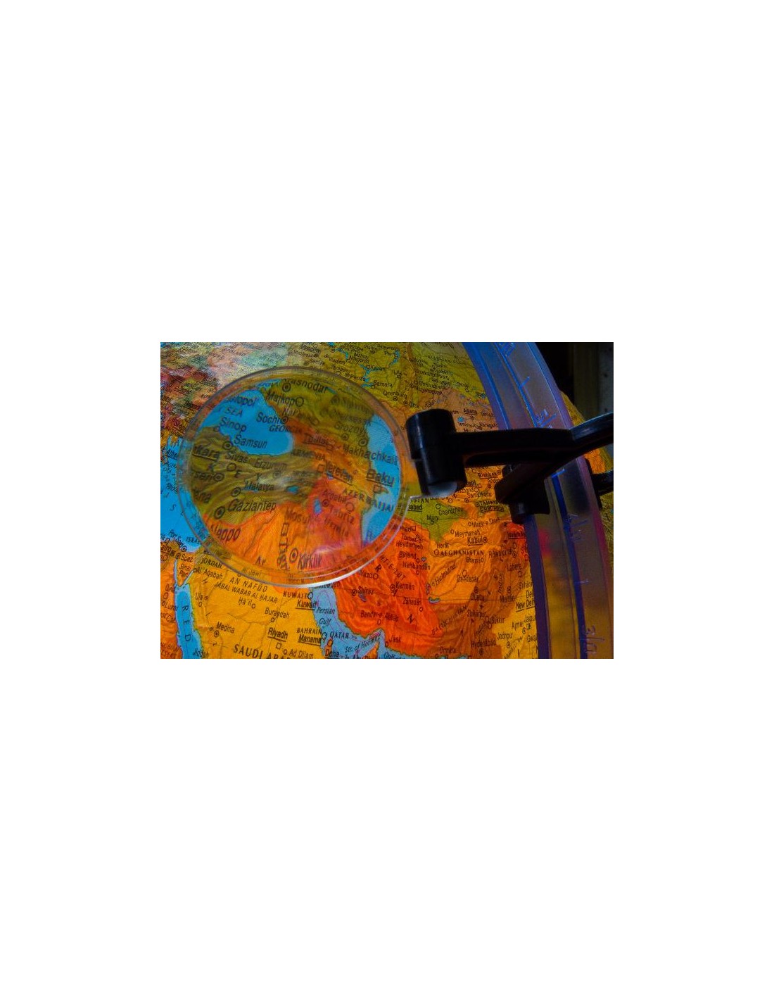 Are o baza durabila si un meridian albastru. De asemenea include si o lupa cu suport din plastic care poate fi atasata pe arcul meridian al globului.