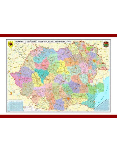 Romania si Republica Moldova. Harta administrativa