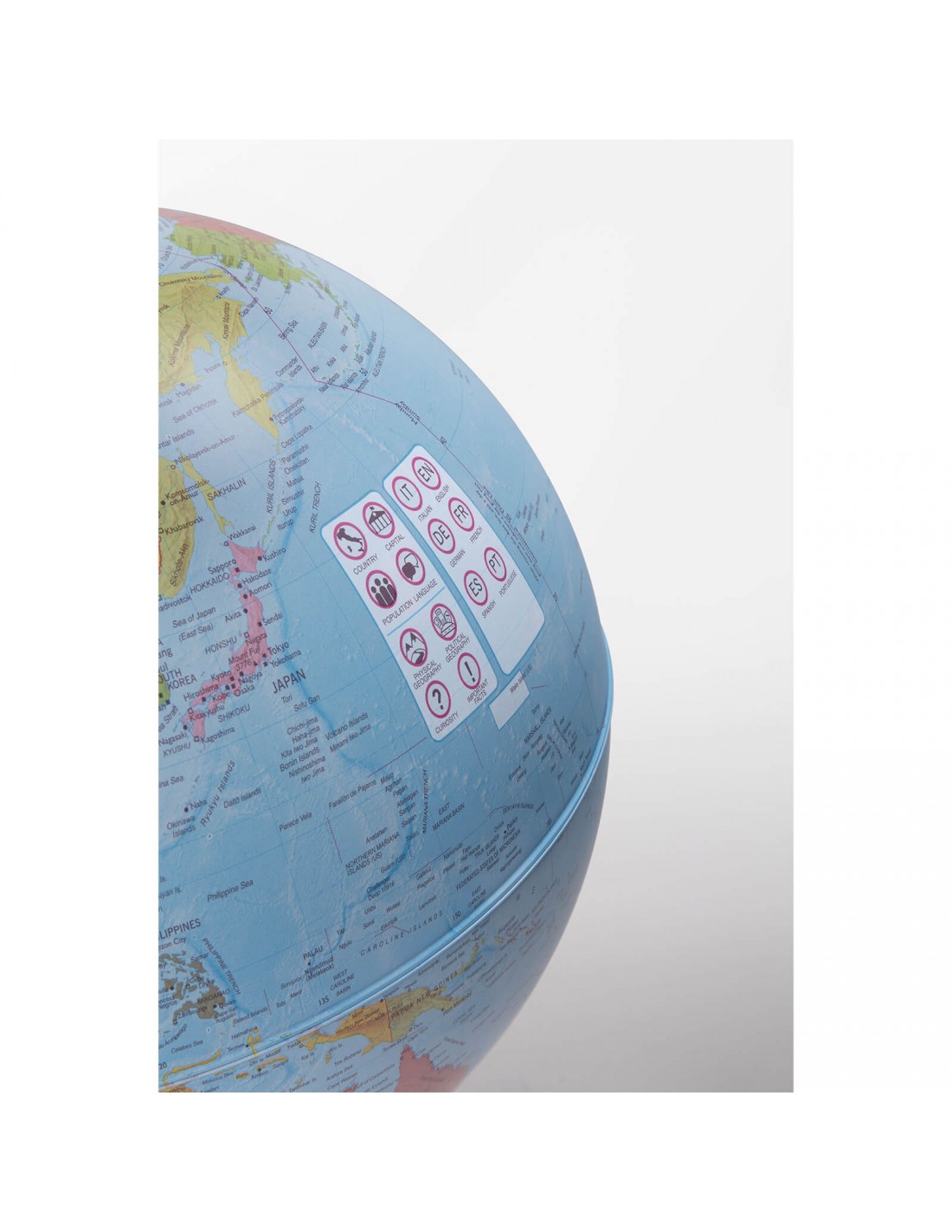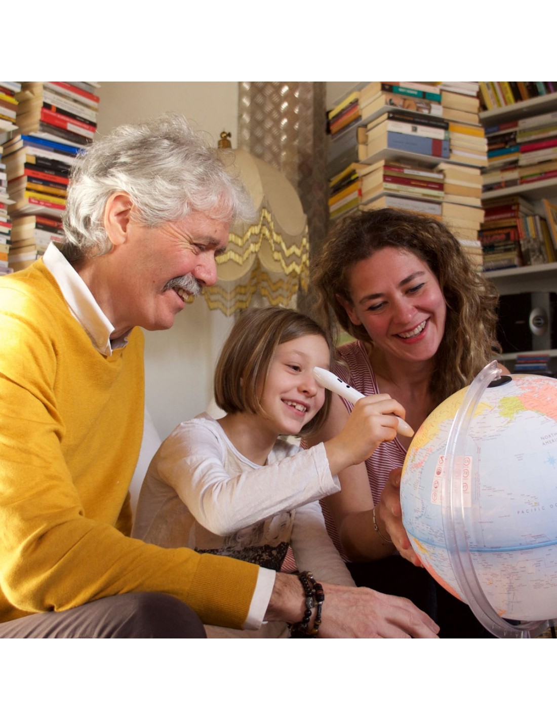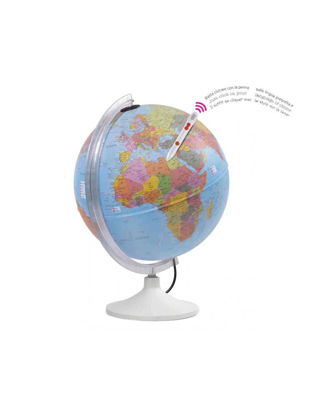 Globul este iluminat si vine cu un “creion vorbitor” ce transmite o multitudine de informatii in 6 limbi diferite.