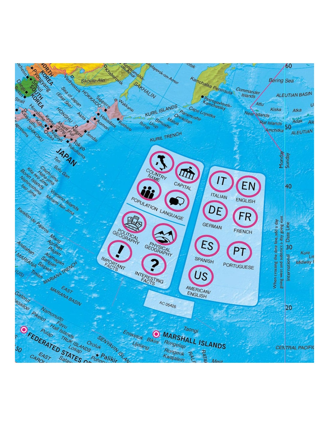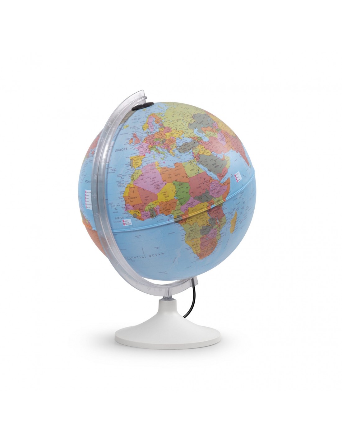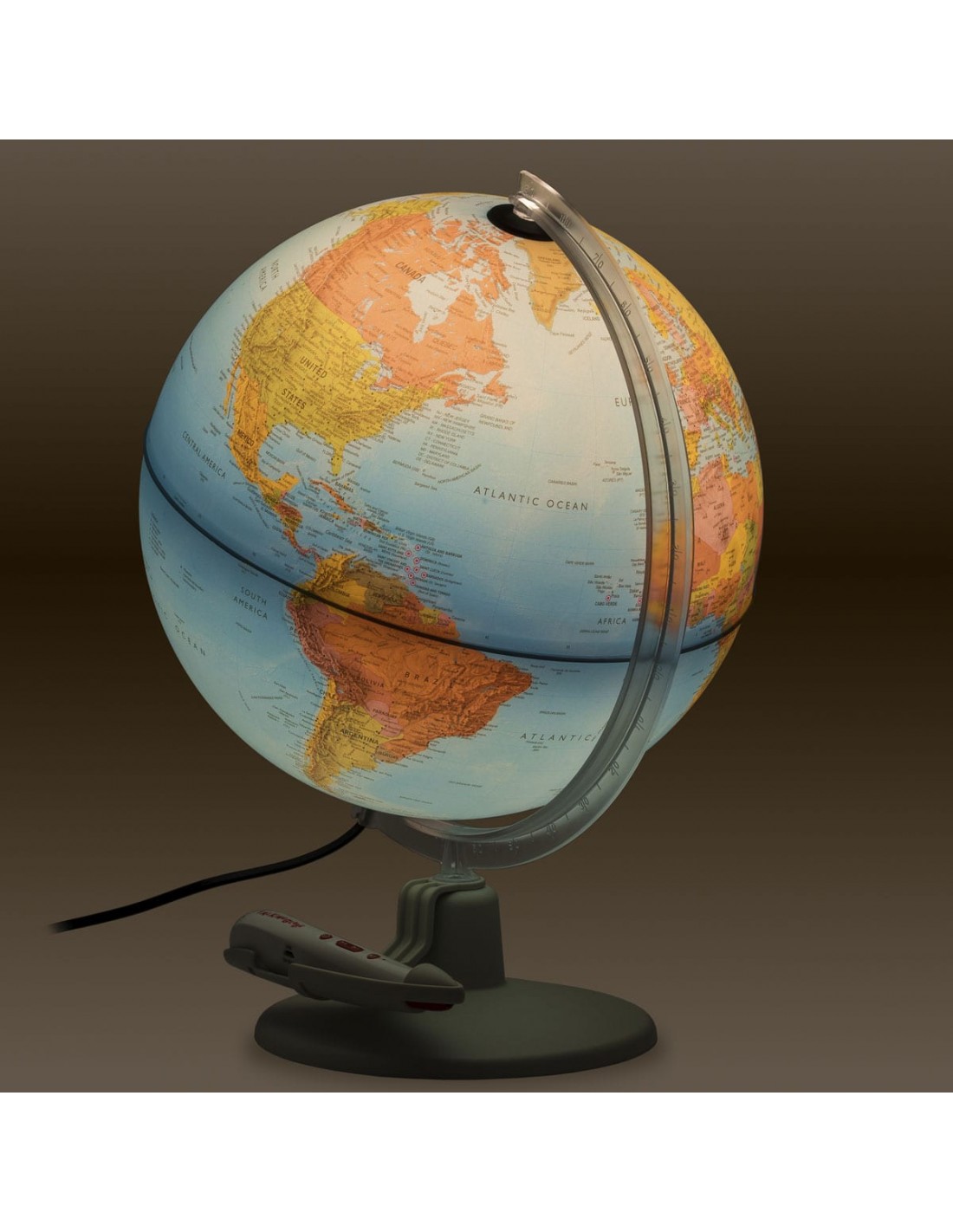 Globul este iluminat si vine cu un “creion vorbitor” ce transmite o multitudine de informatii in 6 limbi diferite.