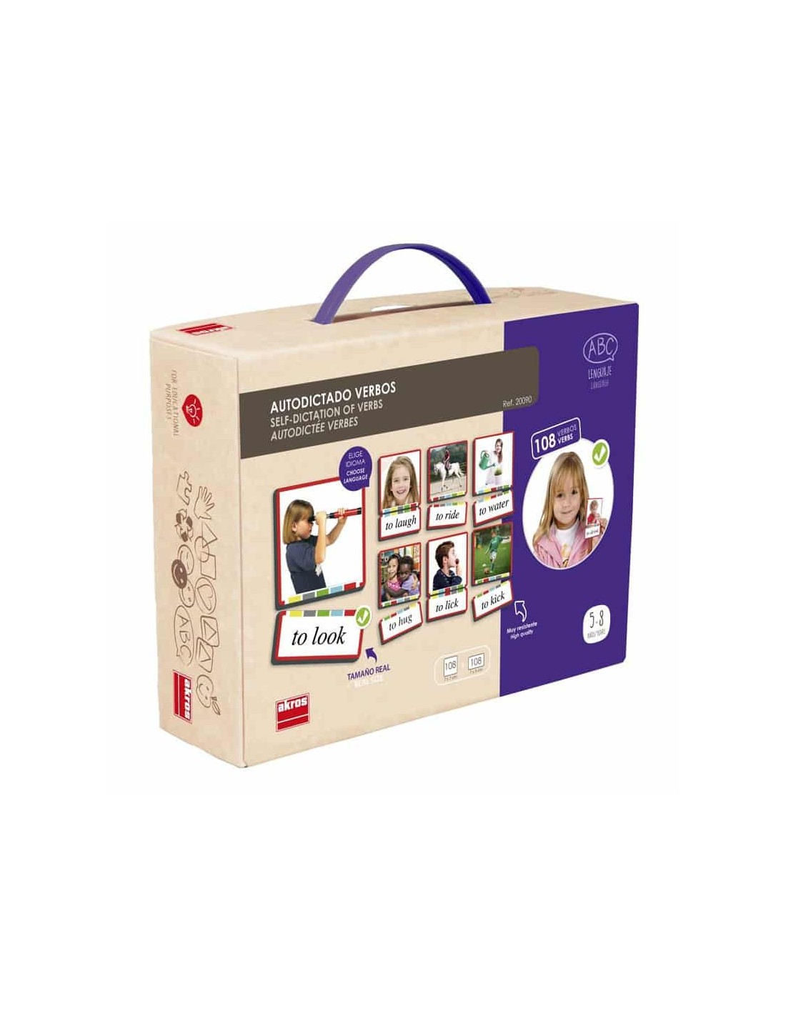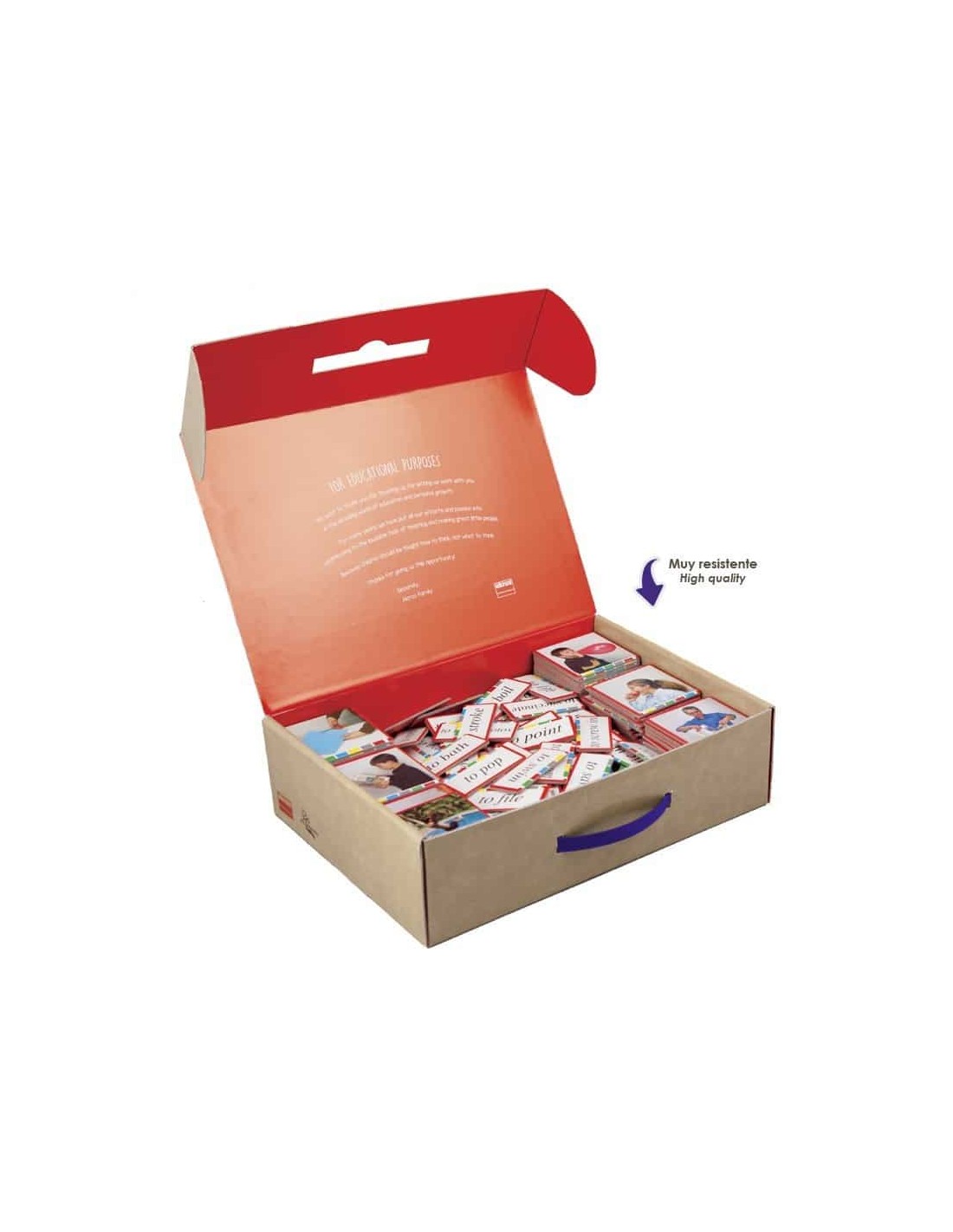 Contine 108 FOTOGRAFII si 108 CUVINTE care corespund verbelor sau actiunilor din imaginea fiecarei fotografii. Continutul didactic ajuta la dezvoltarea vocabularului si imbogateste exprimarea verbala si in scris, prin formarea perechilor compuse dintr-o fotografie si cuvantul corespunzator (un verb). Semnificatia "actiunilor" exprimate prin "verbe" este elementul fundamental in formarea frazelor si in exercitarea limbajului scris si oral. Jocul are un "sistem de autocorectare" compus dintr-o banda cu 5 culori. Tot materialul este facut dintr-un carton gros si foarte rezistent, cu o grosime de 2,5mm cu fata plastificata.