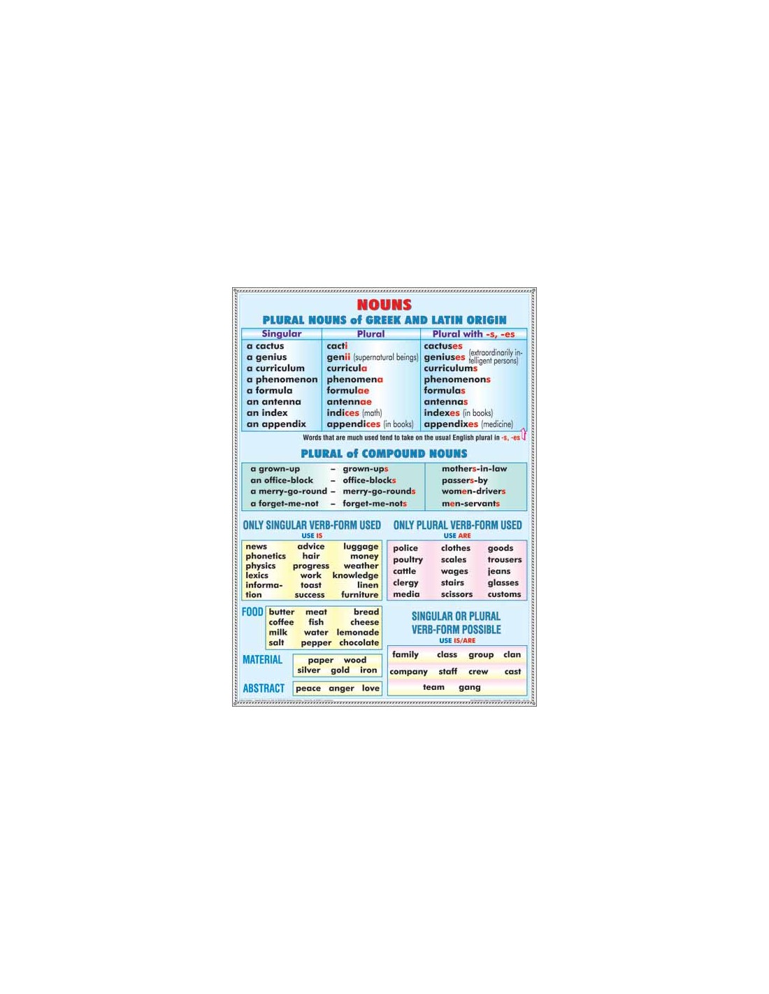 Nouns plural nouns latin-greec origin/ Rules of reading vowels