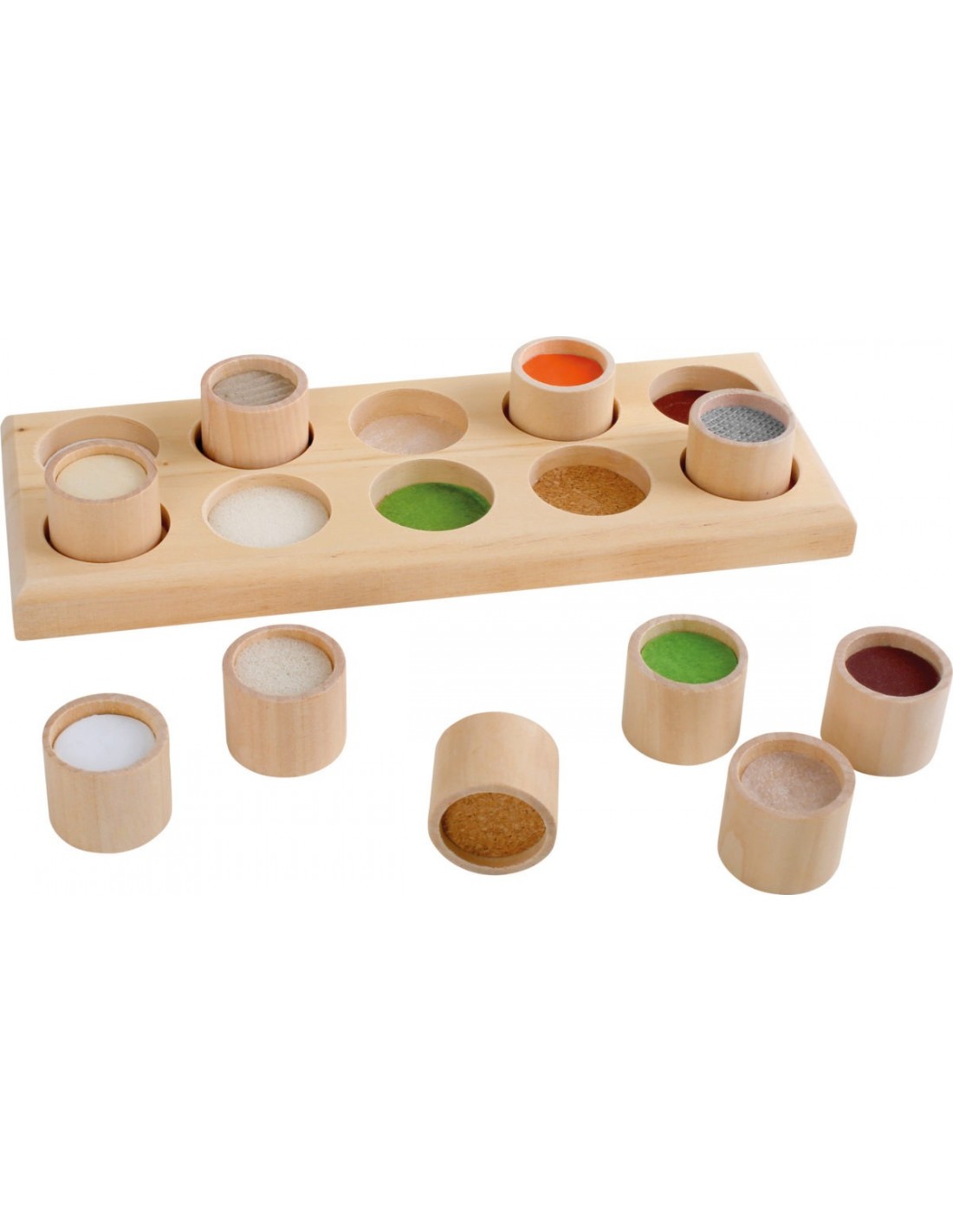 Diferite suprafețe din diferite materiale pentru a antrena percepția tactilă. Setul conține zece recipiente cu texturi diverse și un suport cu inserții din aceeași textură. Copilul poate manipula recipientele, încercând senzații tactile diferite la fiecare recipient. După familiarizare se poate încerca legarea copilului la ochi pentru a descoperi pur tactil care materiale sunt la fel. Un mod unic de a dezvolta unul din simțurile adesea ignorate în educația contemporană, dar cu o importanță deloc mai mică față de văz și auz.