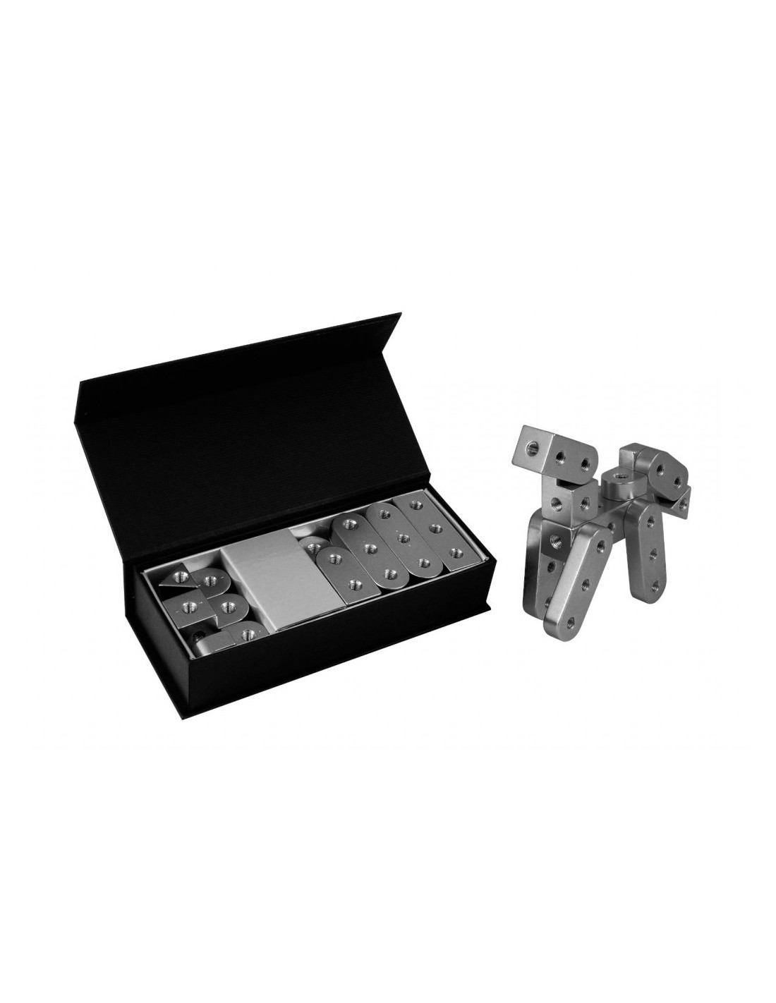 Blocuri metal care sunt fabricate din aliaj de aluminiu. Sunt 10 forme modulare, care pot fi interconectate cu șuruburi special concepute. Acest design ingenios face posibil construirea adevăratelor structuri 3-dimensionale, cu mecanismul său brevetat de conectare, care permite fixarea cu usurinta a două blocuri adiacente în orice unghi.