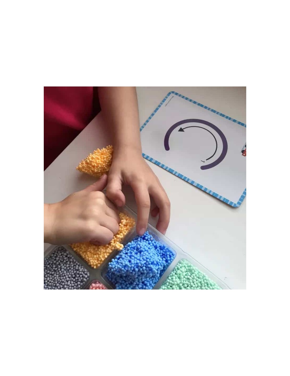 - textura spumei modelatoare incurajeaza perceptia senzoriala a copiilor si ii ajuta pe acestia sa isi dezvolte abilitatile motorii fine