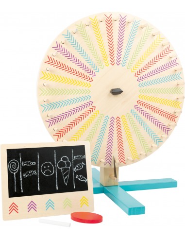 Jocurile ajuta copiii sa isi dezvolte abilitatea de a gandi logic, a castiga, a pierde si a-si astepta rindul. Conținut: • 1 roată noroc  • 1 tabla de bord • 1 disc roșu • 1 buc. cretă albă Dimensiune: 44x44x52 cm.